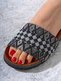 Woven Tribal Print Comfort Slides - BLACK
