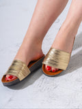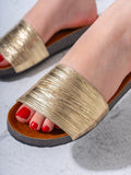 Metallic Ruched Comfort Slides - GOLD