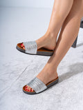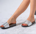 Metallic Ruched Comfort Slides - SILVER