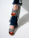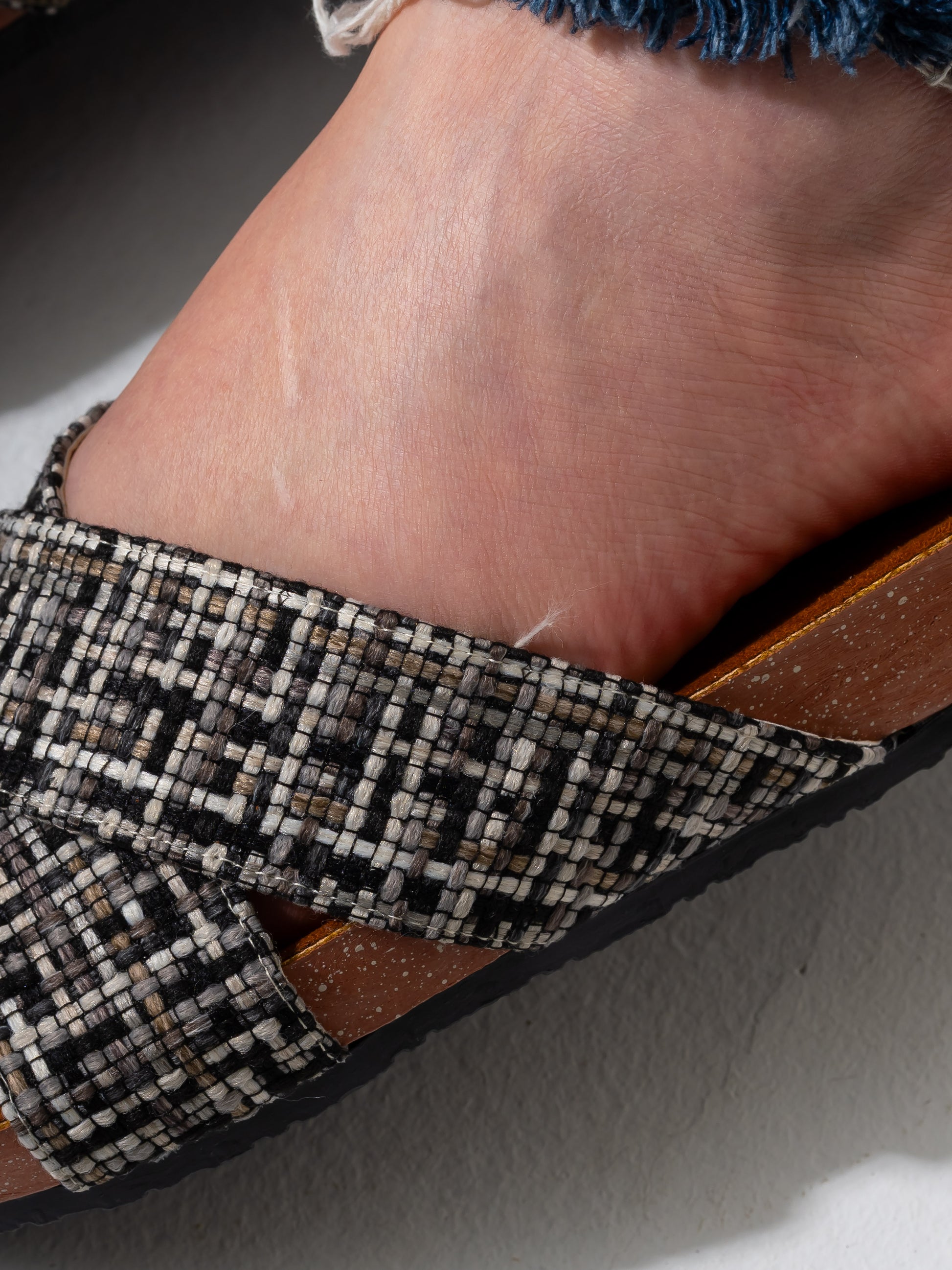 Checkered Tweed Crisscross Slides - BLACK