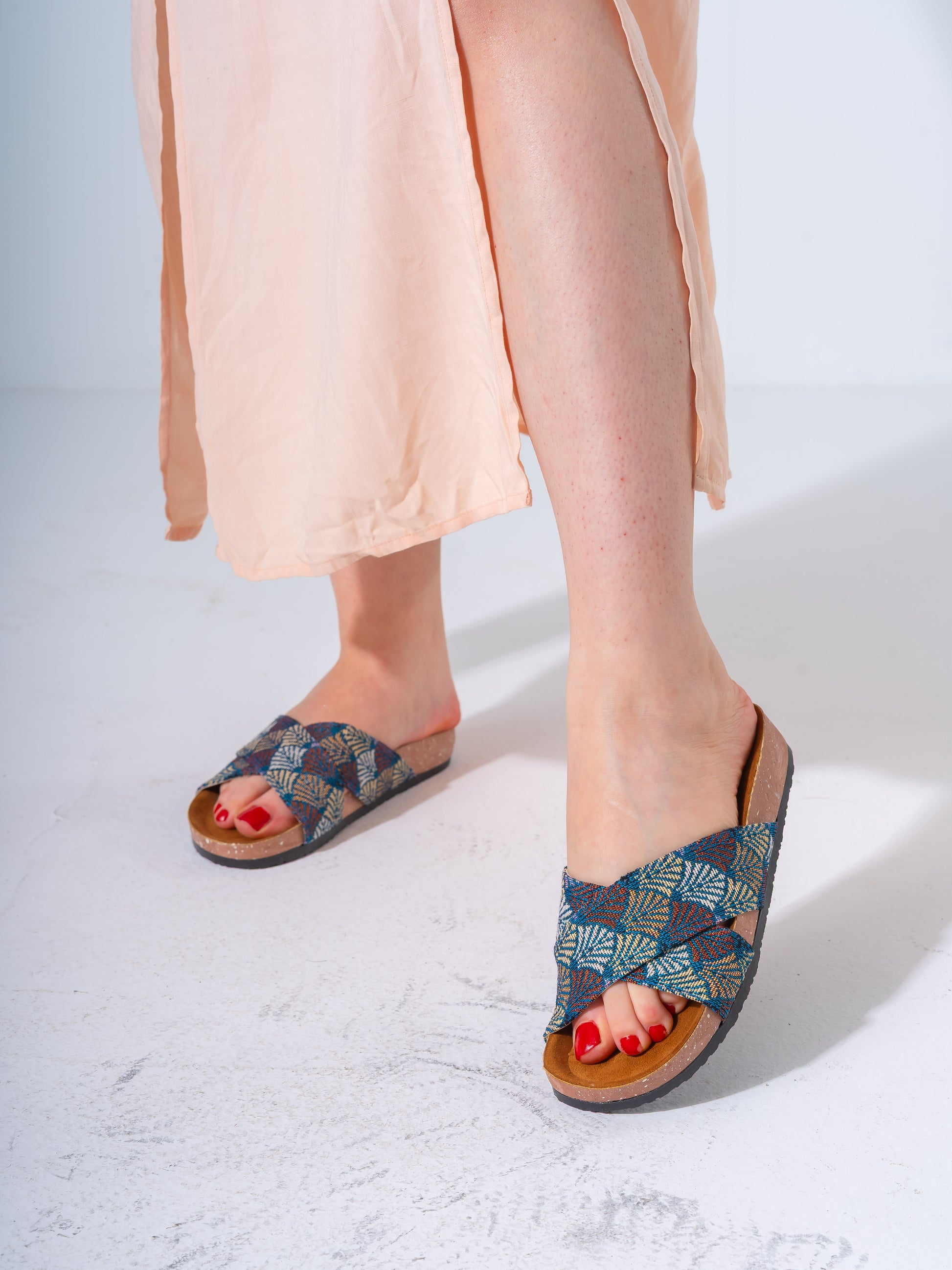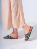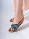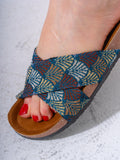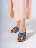 Ethnic Patterned Cross-Strap Slides - DARK BLUE
