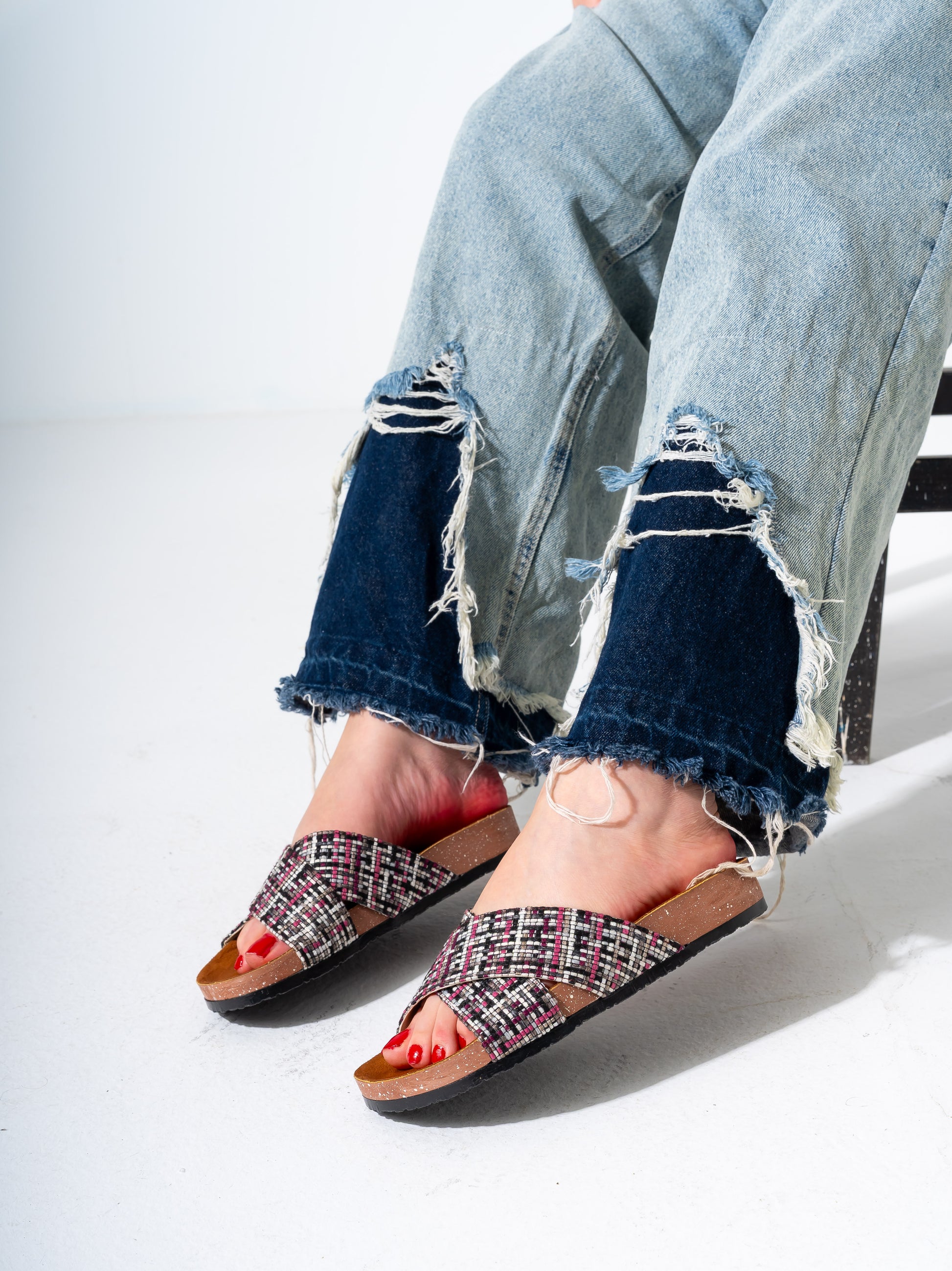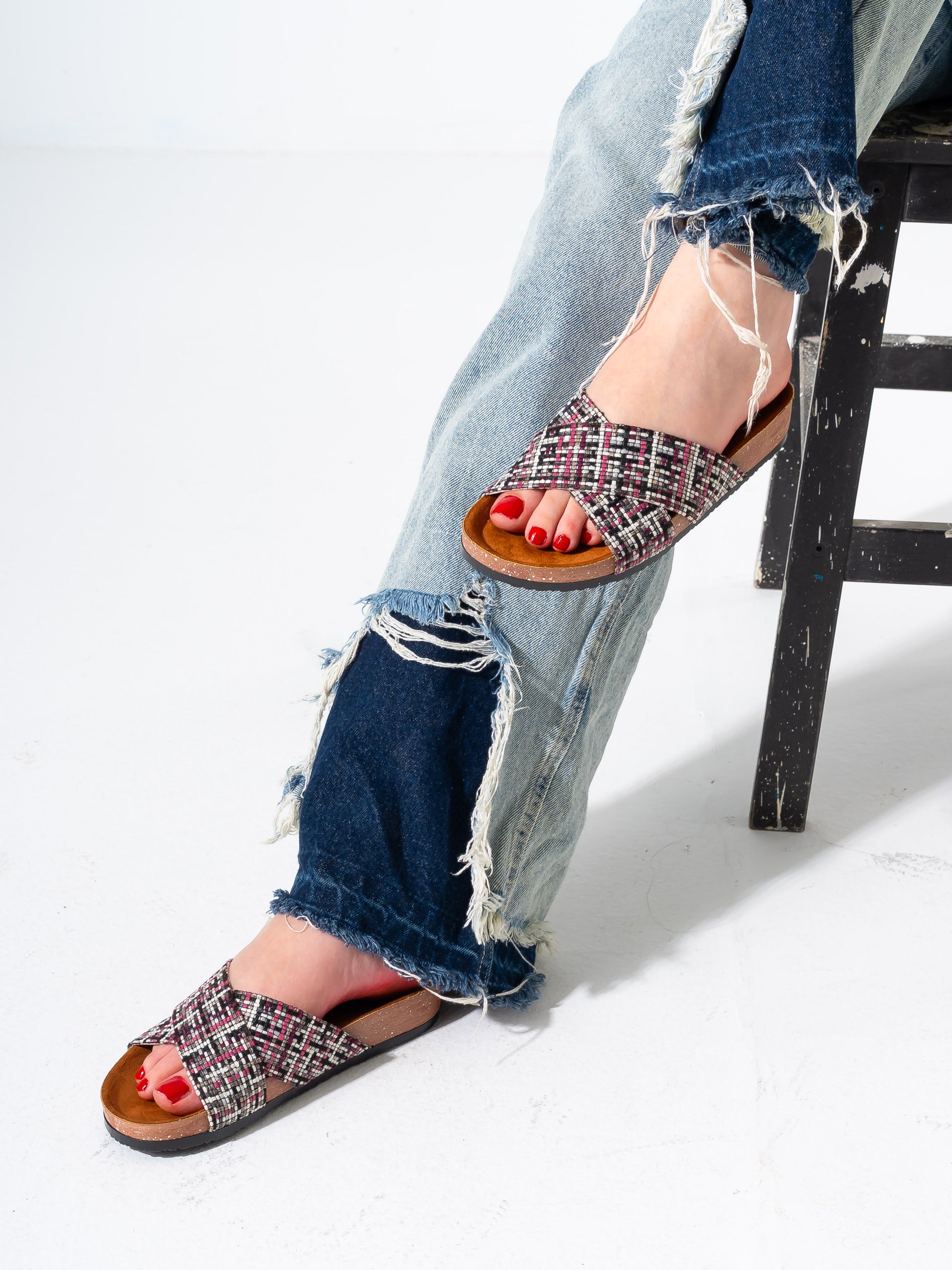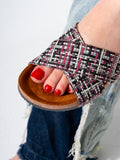 Checkered Tweed Crisscross Slides - PINK