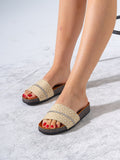 Geometric Pattern Slide Sandals with Rhinestone Detail - BEIGE