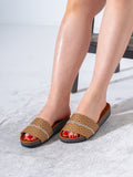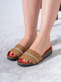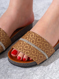 Geometric Pattern Slide Sandals with Rhinestone Detail - CAMEL
