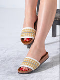 Rhinestone Strip Woven Slipper - GOLD