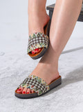 Embrace a relaxed yet artistic vibe with these stylish geometric print slides. Featuring an intricate ethnic-inspired motif, these sandals combine a handcrafted look with modern comfort, making them a standout addition to your footwear collection.