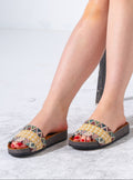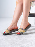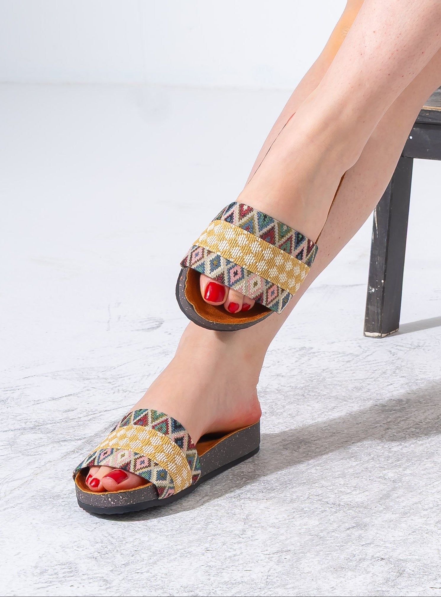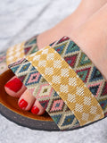 Embrace a relaxed yet artistic vibe with these stylish geometric print slides. Featuring an intricate ethnic-inspired motif, these sandals combine a handcrafted look with modern comfort, making them a standout addition to your footwear collection.