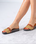 Textured Ethnic Motif Slippers - CAMEL