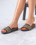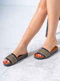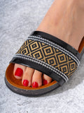 Step into a blend of cultural art and modern comfort with our latest collection of artisan-inspired slides. Each pair features a uniquely woven strap adorned with intricate geometric and tribal motifs, designed to bring an effortless bohemian elegance to your summer wardrobe.v