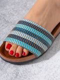 Experience a perfect blend of artistic flair and everyday comfort with our collection of artisan-inspired slide sandals. These slippers are characterized by their rich textural diversity, featuring a variety of intricate woven patterns and embellished accents that make each pair a unique statement piece.