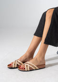 Metallic Ribbed Slides - BEIGE
