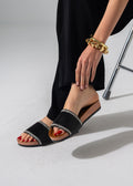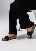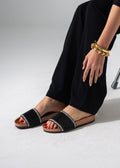Step into effortless elegance with our Pleated Jewel Slides. Designed with a sophisticated ribbed texture and accented by shimmering rhinestone borders, these slides are the perfect blend of comfort and high-fashion sparkle. Whether you're heading to a brunch or a casual evening out, these sandals add a touch of luxury to every step.
