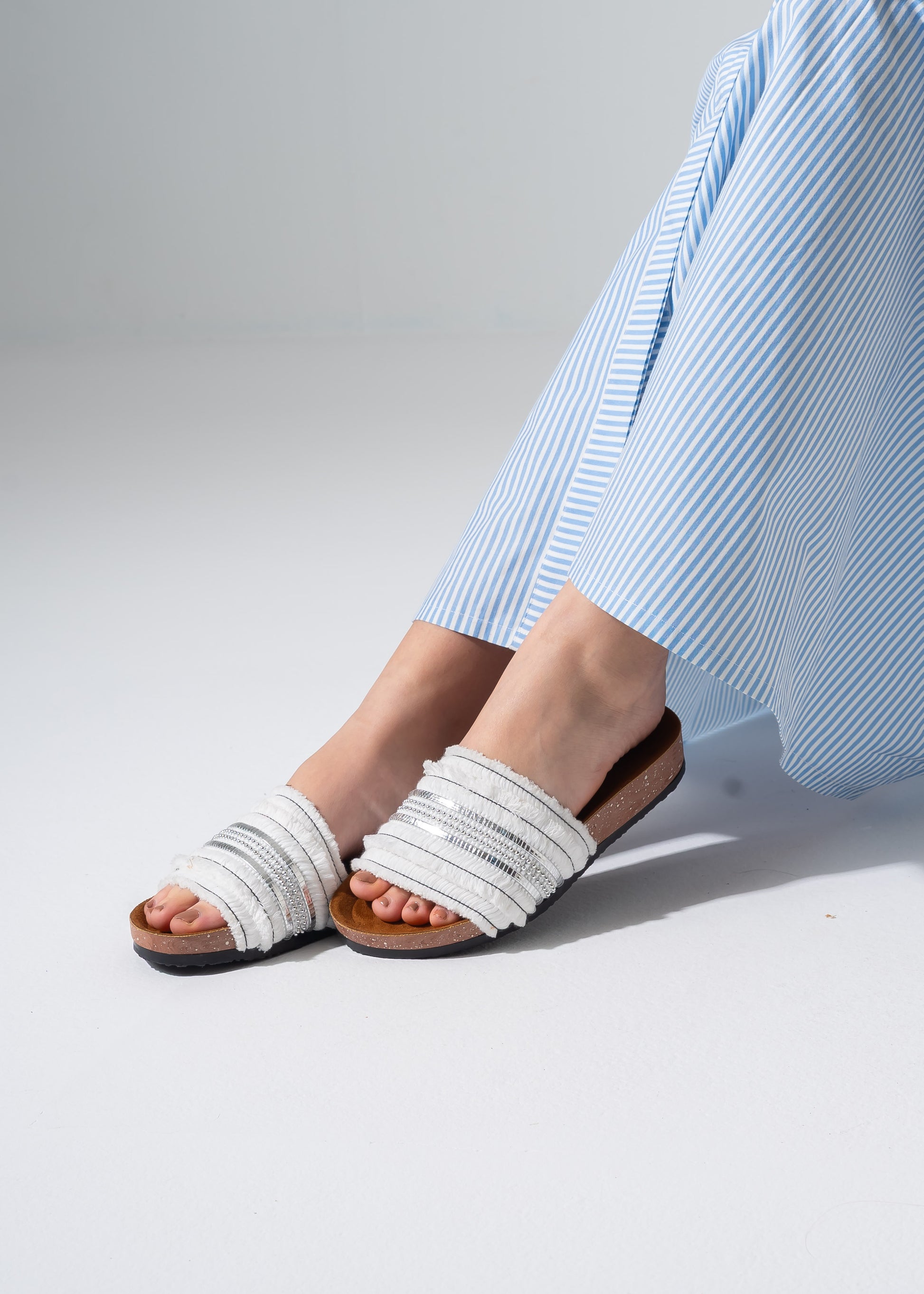 Tassel Trim Sliders - WHITE