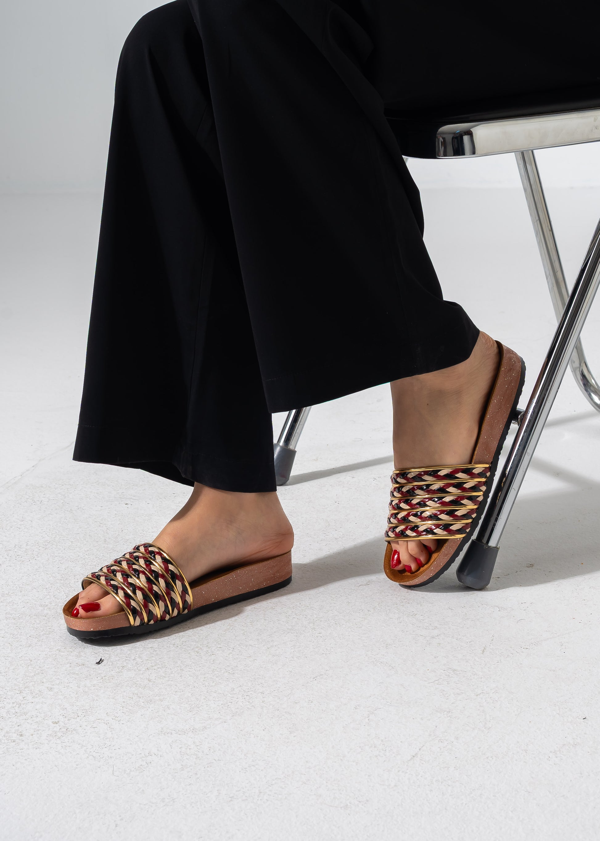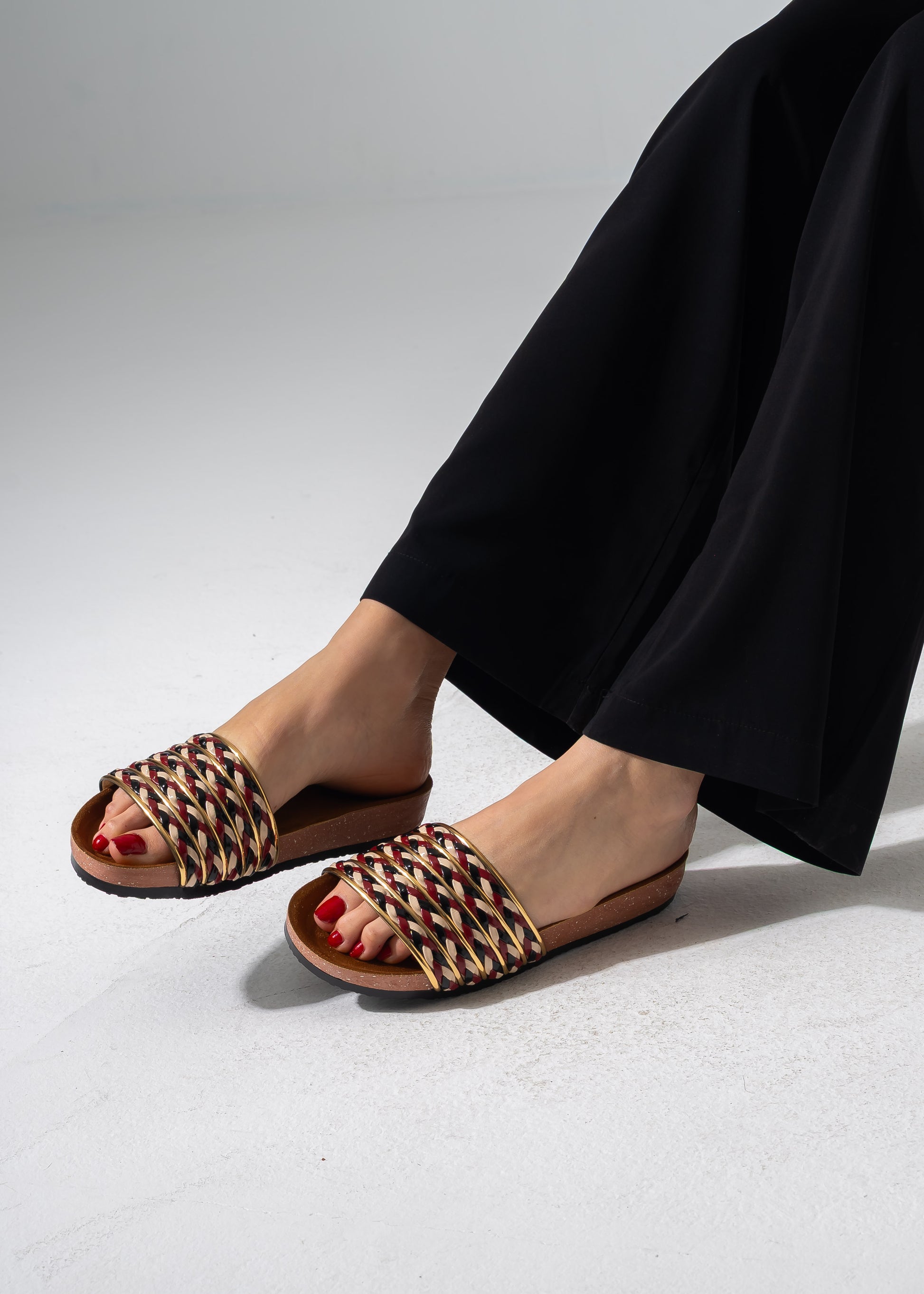 Multi-Strap Ethnic Slides - MARRON