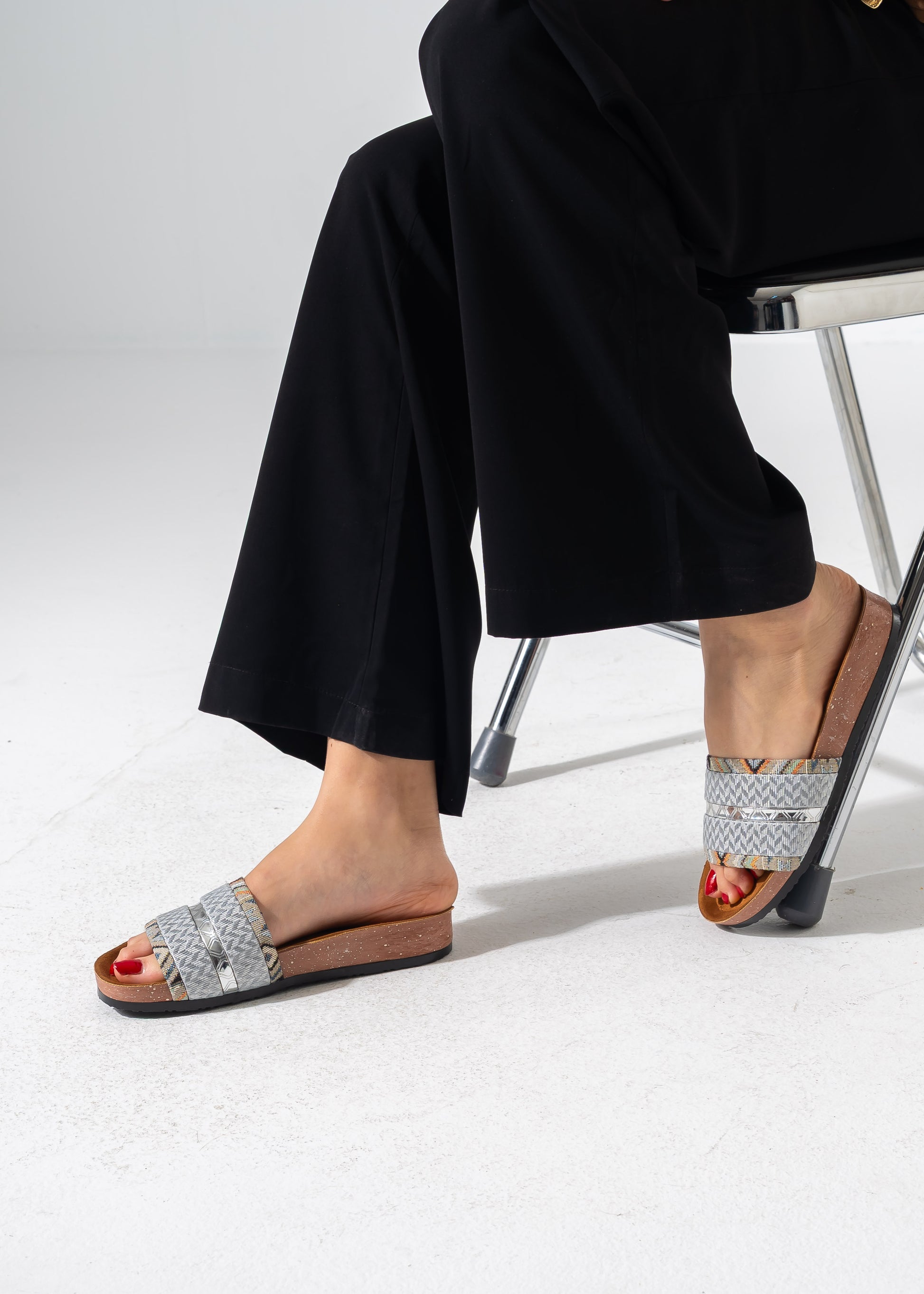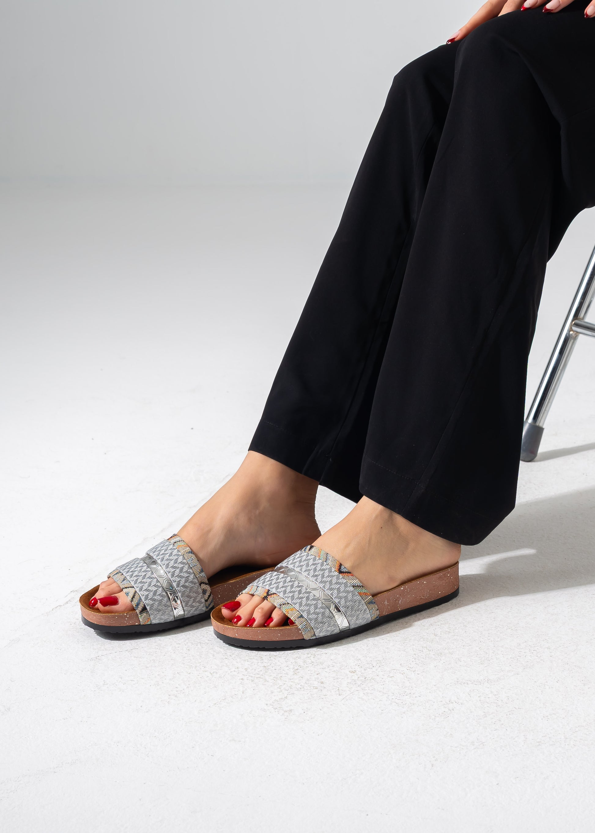 Elevate your everyday style with our Ethnic Glam Slides. This unique pair combines the rich texture of traditional woven tapestry with a striking metallic accent for a look that is both earthy and luxurious. Featuring a contoured footbed and a slip-on design, these slides offer a perfect blend of artistic flair and all-day comfort, making them an essential addition to your summer wardrobe.