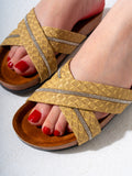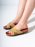 Sparkle in every step. These stylish slides feature a unique woven criss-cross design accented with shimmering rhinestone detailing. Built on a contoured comfort footbed, they offer the perfect mix of glamour and everyday ease.