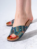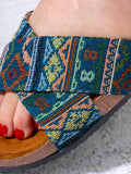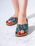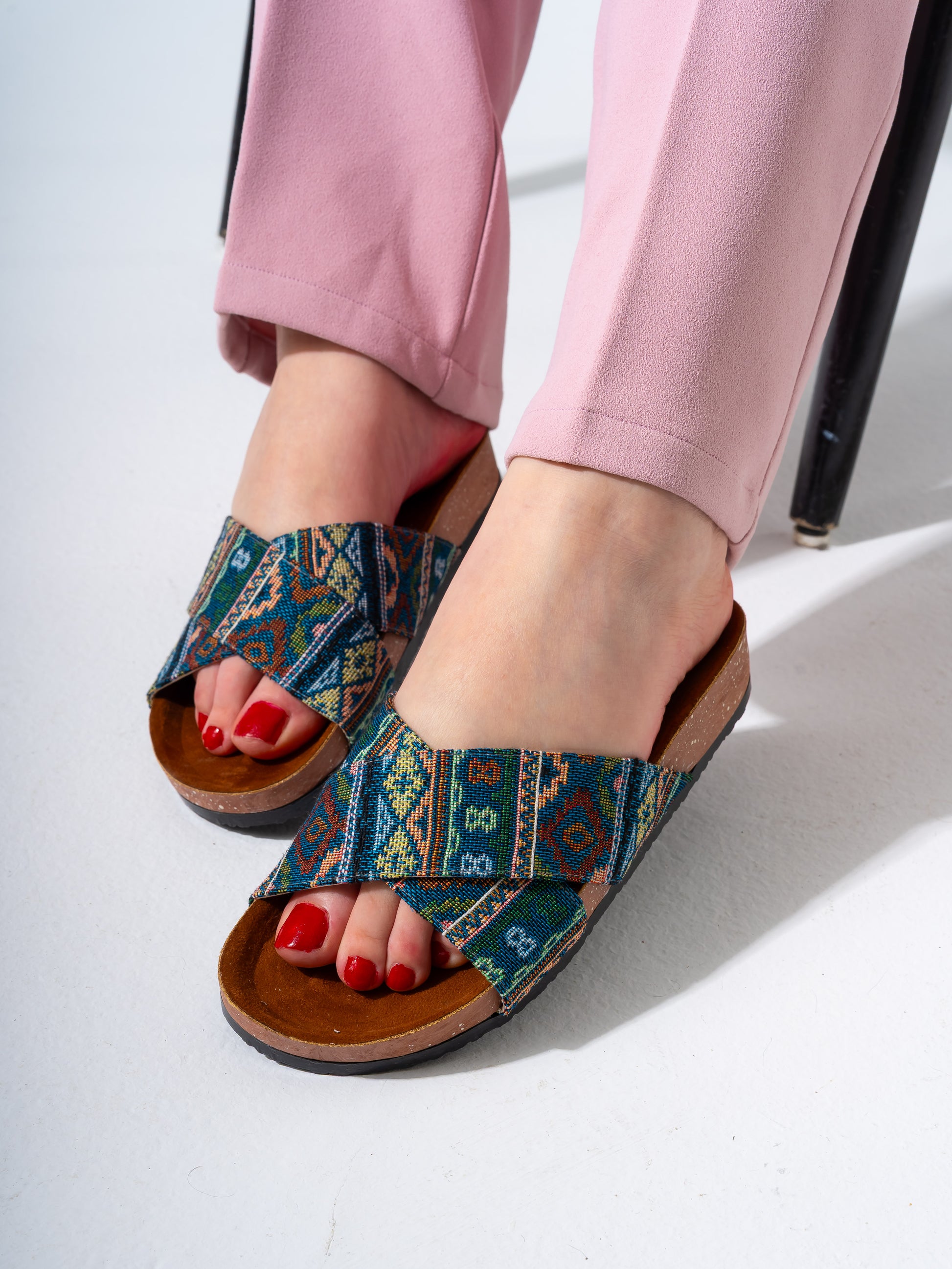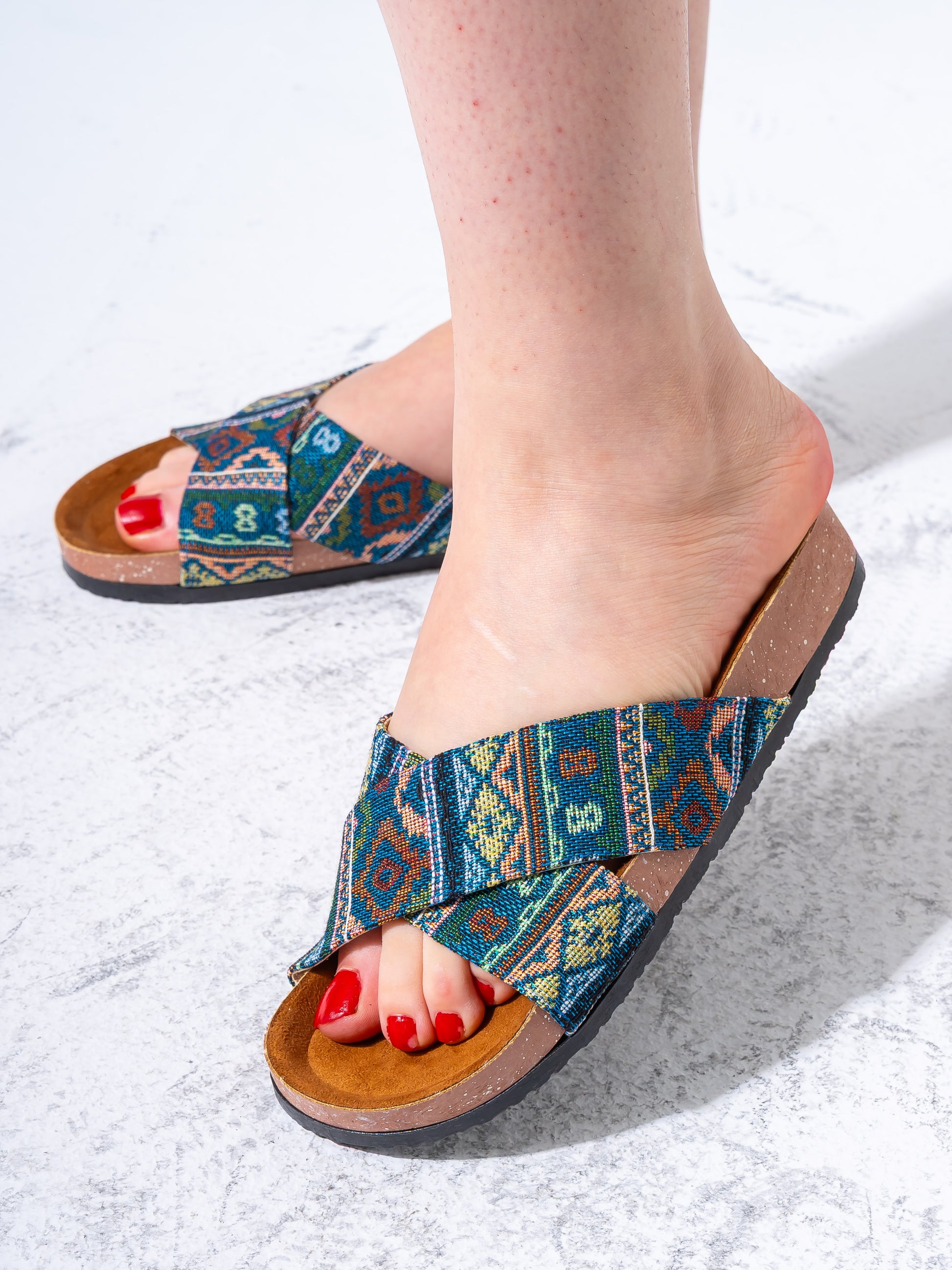 Elevate your casual look with these stylish criss-cross sandals. Featuring soft, woven fabric straps with an intricate geometric pattern, these slides offer a perfect blend of comfort and bohemian flair. The contoured footbed provides excellent support for all-day wear, while the durable textured outsole ensures a steady grip. Perfect for summer outings or relaxed everyday style.