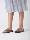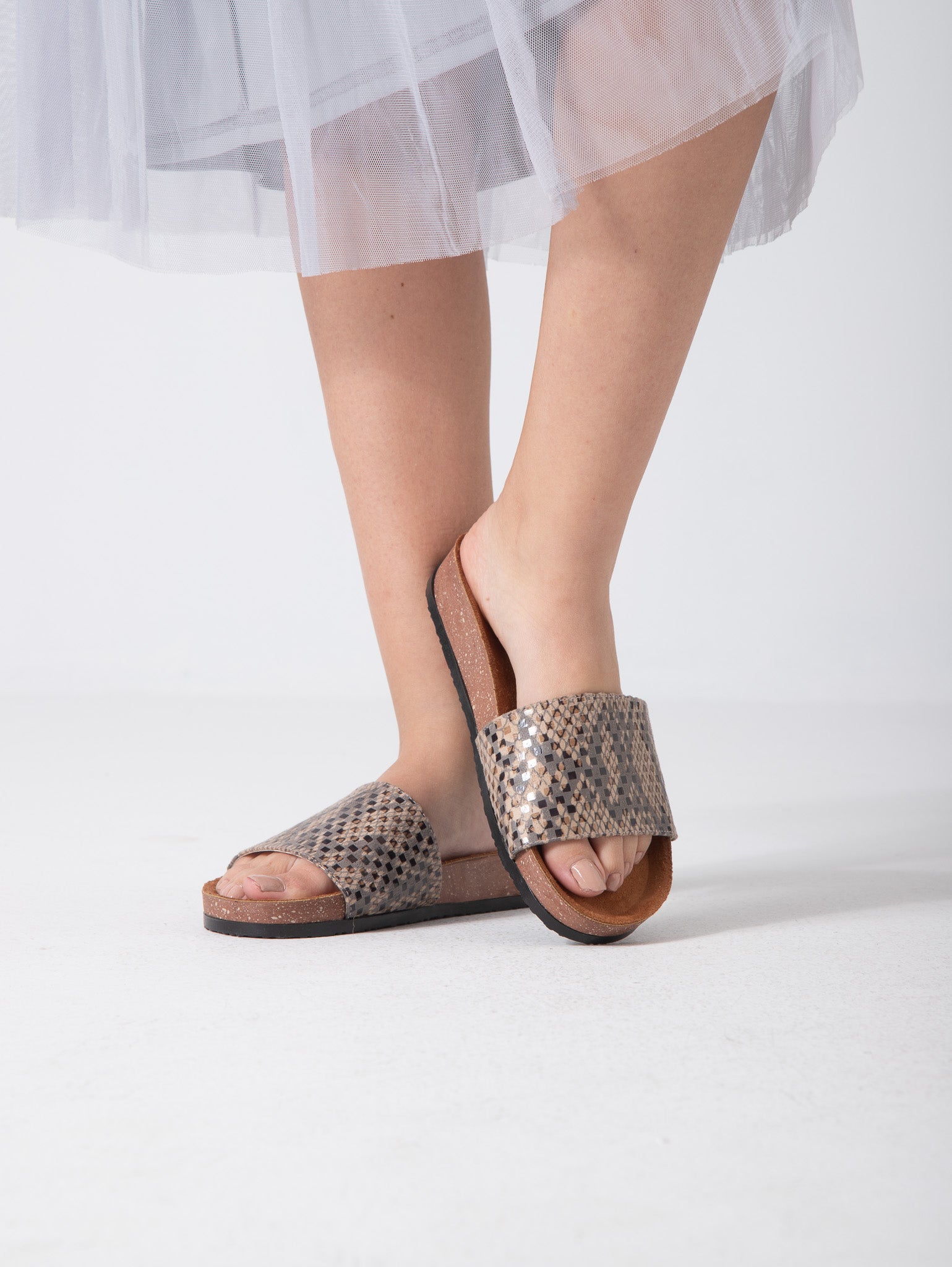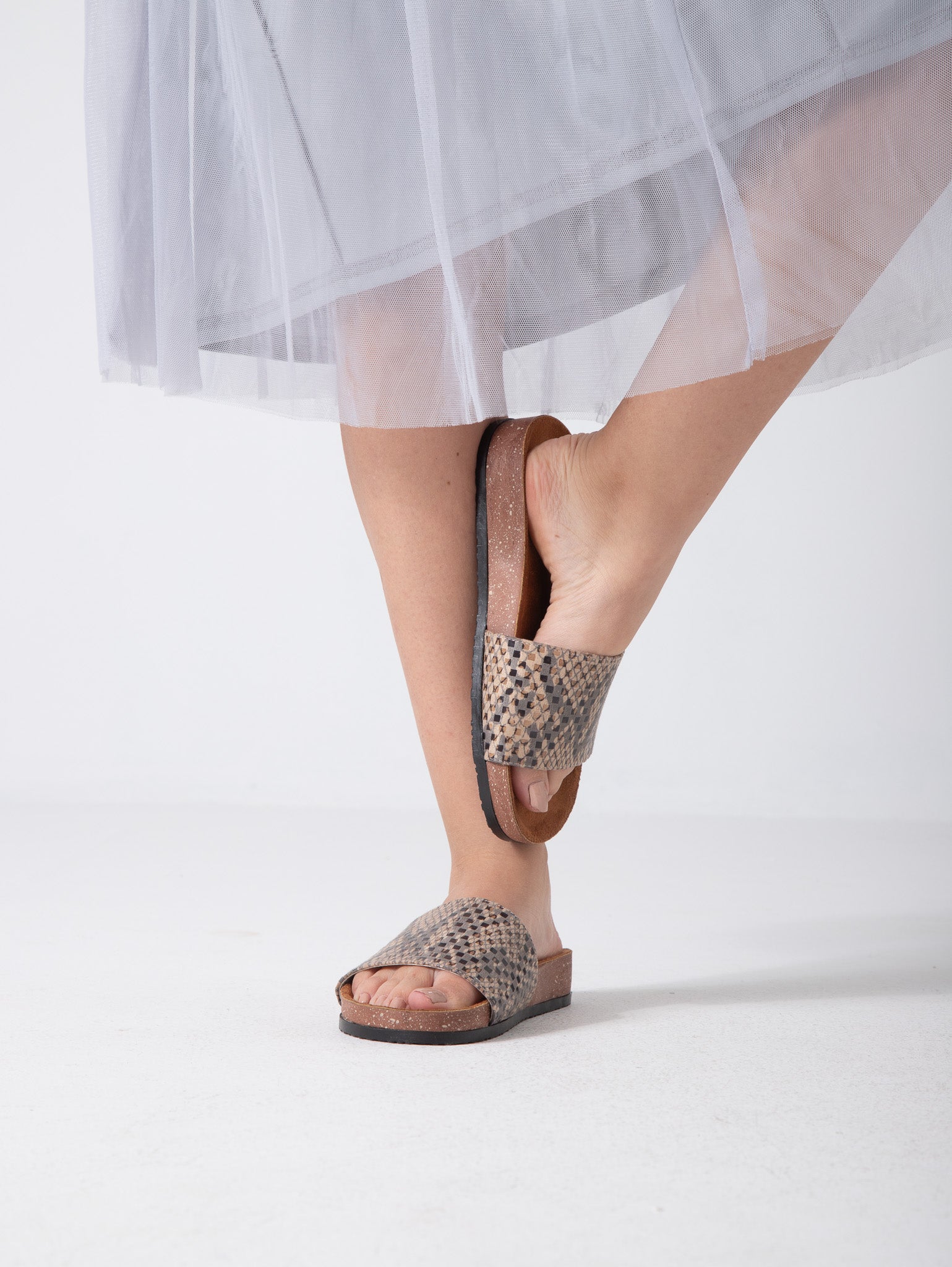 The Retro Grid Slides in cafe color are a stylish and comfortable option for your everyday footwear needs. With a unique grid design and cushioned sole, these slides provide both fashion and functionality. Made with high-quality materials, they are built to last.