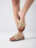 Woven Crisscross Strap Slides - beige