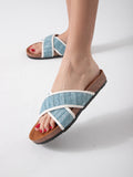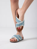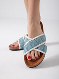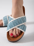 Woven Crisscross Strap Slides - blue