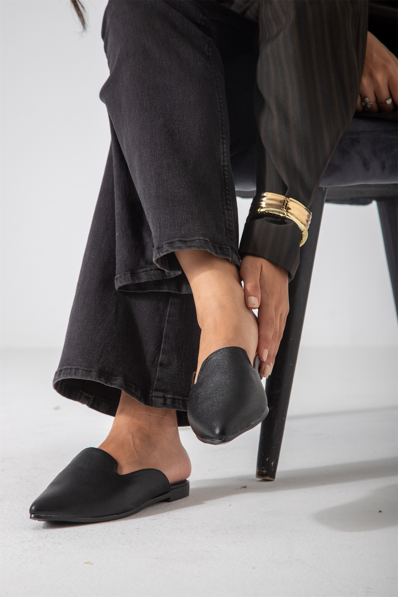 Elevate your style with the Chic Backless Flat-black shoes, expertly designed for comfort and sophistication. Featuring a sleek backless silhouette, these flats offer easy slip-on wear and breathability, perfect for warm weather and all-day use. The minimalist black finish ensures versatile pairing with a variety of outfits, making them an essential addition to any fashion-forward wardrobe.