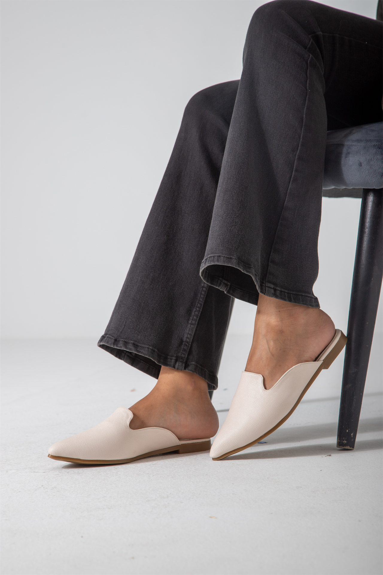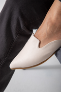 Experience elegant simplicity with the Chic Backless Flat in off-white. Designed for comfort and style, this shoe features a sleek backless design that offers breathability and ease of wear. Its flat sole ensures all-day comfort, making it an ideal choice for both casual and refined looks. The neutral off-white shade effortlessly complements a variety of outfits, adding a subtle touch of sophistication to your wardrobe. Perfect for those seeking minimalist elegance without compromising on comfort.