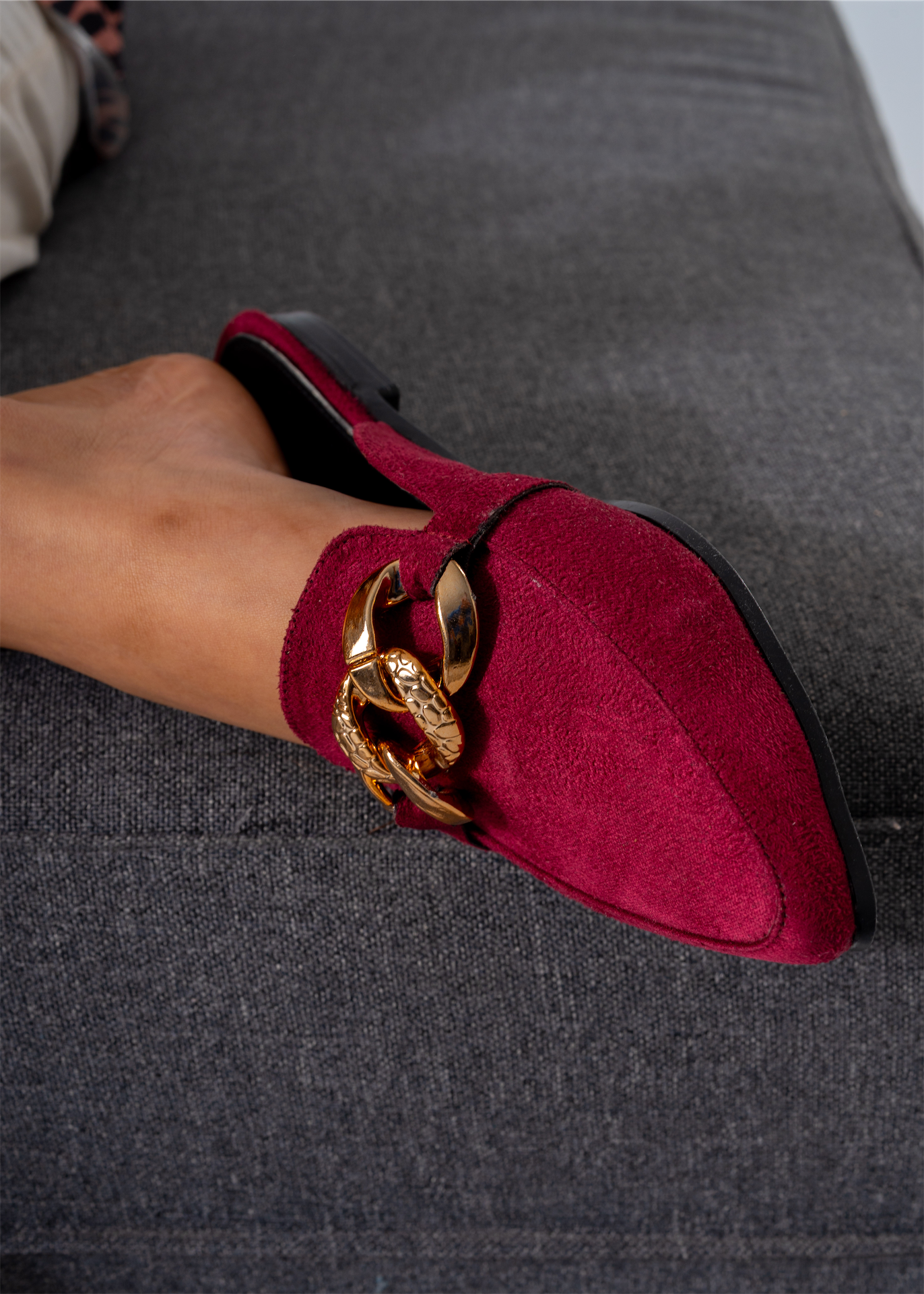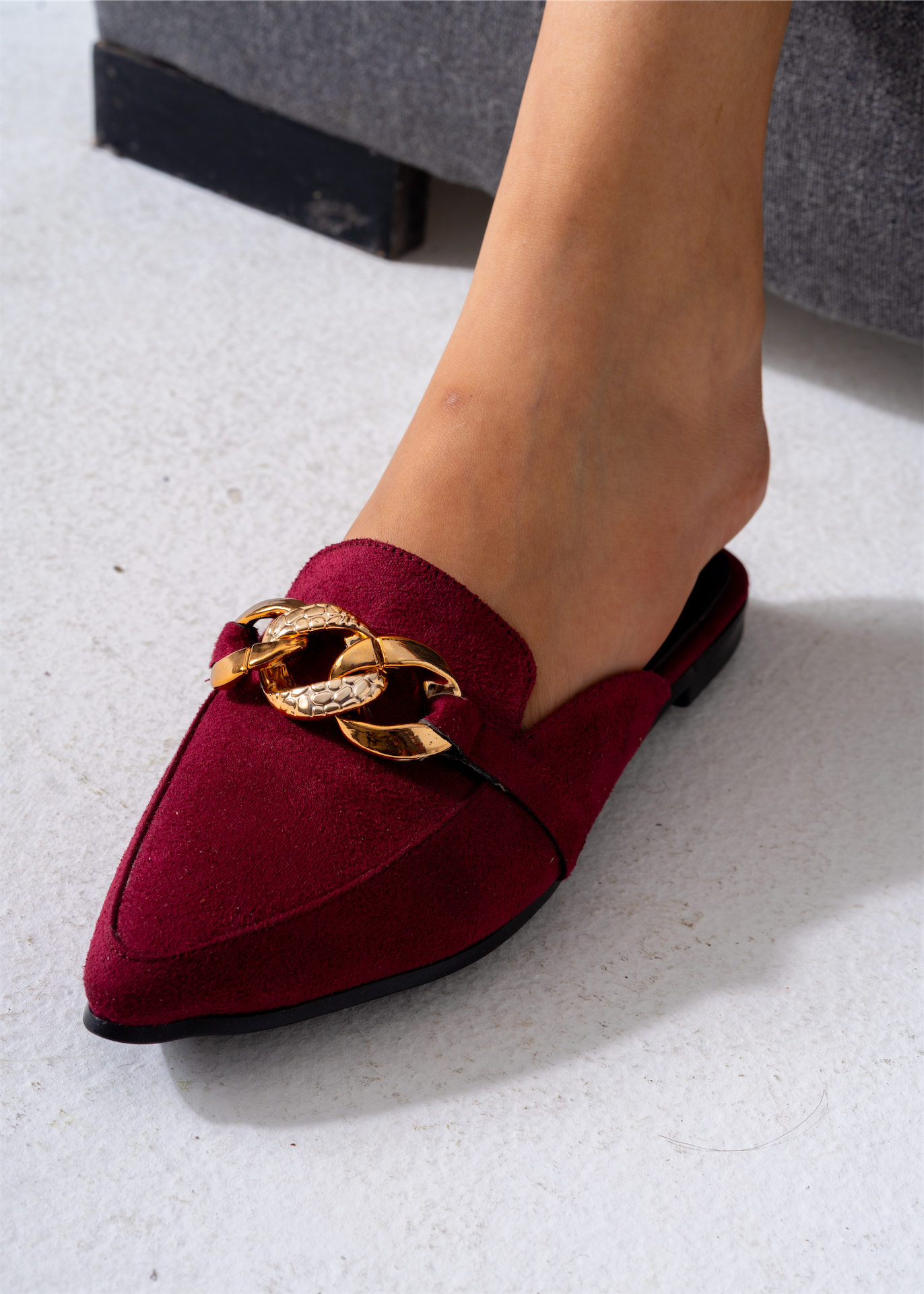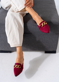 The Moc-Toe Style Chain Mule in rich marron features a classic moccasin toe design paired with a sleek chain detail for added sophistication. This mule offers easy slip-on convenience while maintaining a polished look suitable for both casual and formal settings. Crafted for comfort and style, it’s an excellent choice for those seeking a versatile, expert-level footwear option.