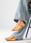 Step confidently with these rose gold metallic mules featuring a distinctive snake-embossed pattern. Crafted for both style and comfort, their sleek silhouette complements a range of outfits, while the textured finish adds a sophisticated edge. Ideal for elevating your wardrobe with a subtle yet striking statement.