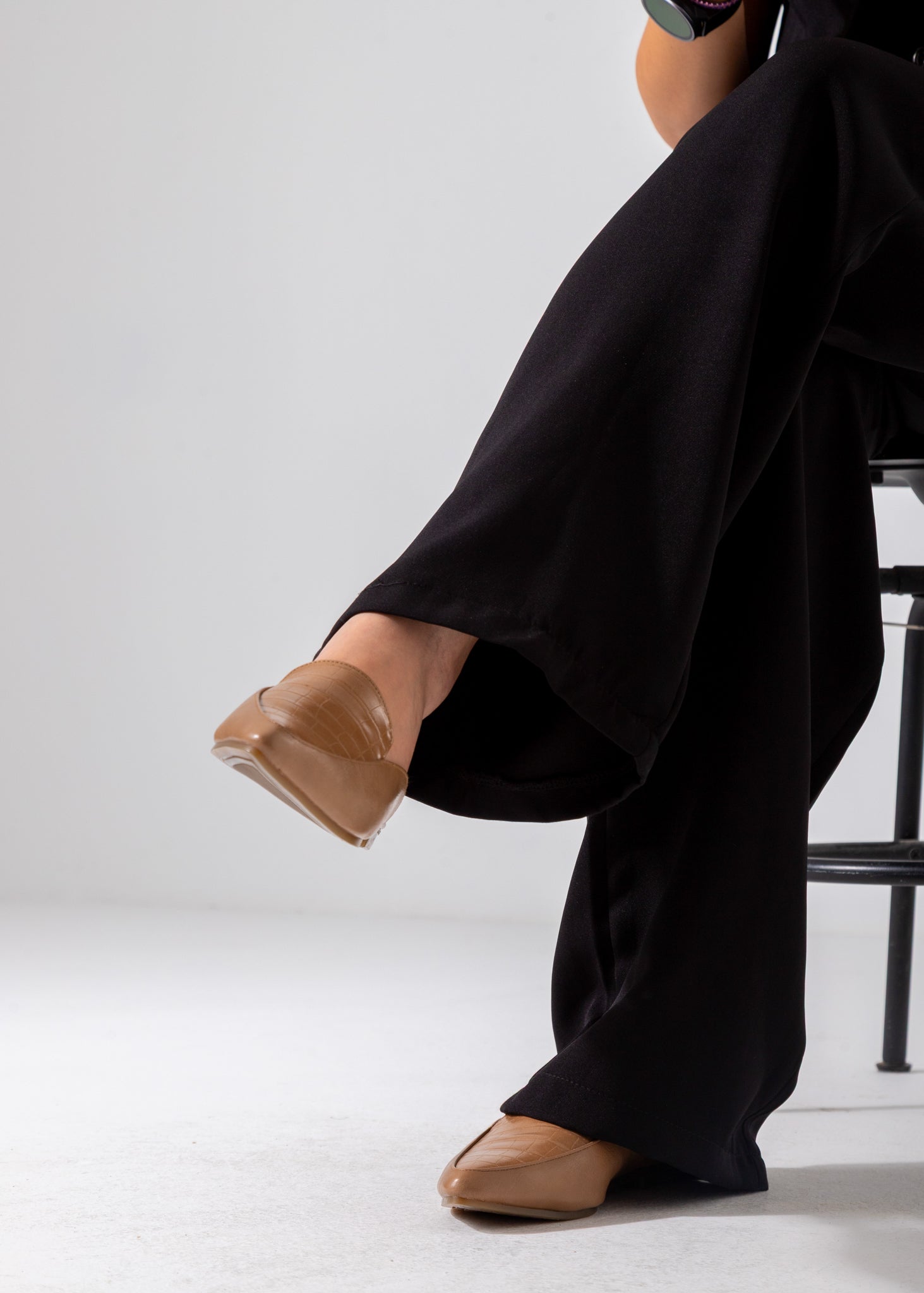 Elevate your footwear collection with the Croc-Embossed Pointed Mule in cafe. Expertly crafted, its textured croc pattern adds an element of refined sophistication, while the pointed toe enhances a sleek, modern silhouette. Designed for effortless style and comfort, this mule seamlessly transitions from professional settings to casual outings. The rich cafe hue complements a variety of looks, making it a versatile and distinguished addition to your wardrobe.
