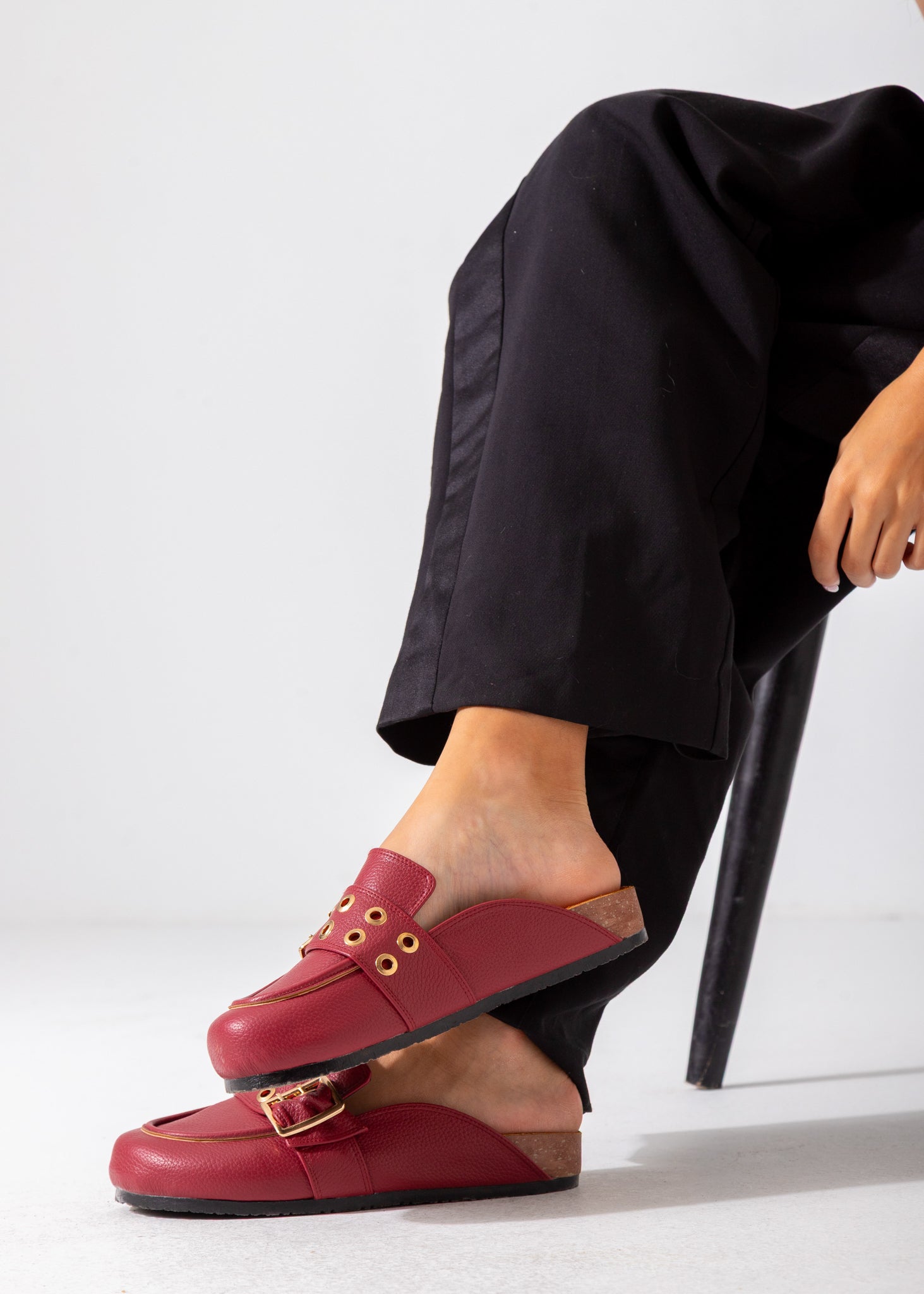 These Metallic Studded Buckle Clogs in Marron combine durability with refined style. Crafted with high-quality materials, their metallic studs and adjustable buckle offer a secure fit and a distinctive look. Designed for comfort and long-lasting wear, they are an excellent choice for those seeking both practicality and contemporary fashion in their footwear.