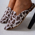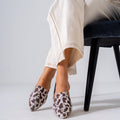 Faux Fur Animal Print Mules-white