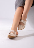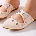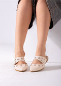 Elevate your wardrobe with these Studded Pointed Backless Mules in beige. Featuring a sleek pointed toe and edgy stud embellishments, they deliver a perfect balance of sophistication and bold style. The backless design offers easy slip-on comfort, making them ideal for both casual and dressier occasions. Crafted to enhance your look with subtle luxury and standout details.