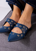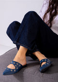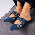 Studded Pointed Backless Mule-dark blue