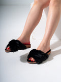 Step into ultimate comfort and style with these chic slide sandals. Featuring a trendy criss-cross upper made from ultra-soft faux fur, these slides are designed to provide a cozy feel while looking effortlessly fashionable