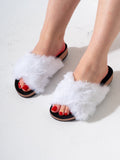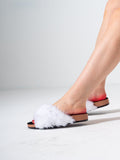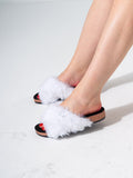 Step into ultimate comfort and style with these chic slide sandals. Featuring a trendy criss-cross upper made from ultra-soft faux fur, these slides are designed to provide a cozy feel while looking effortlessly fashionable
