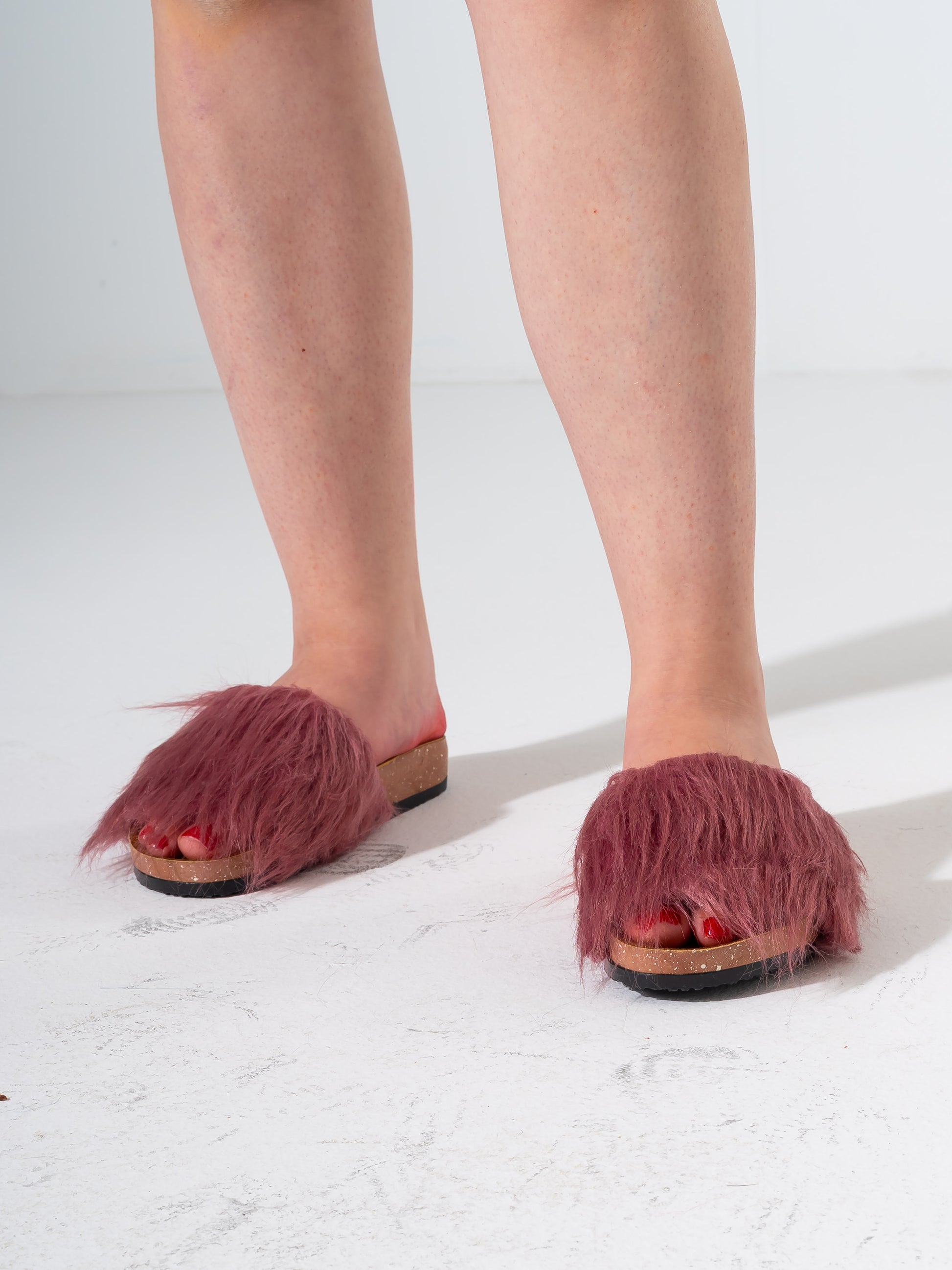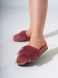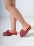 Faux Fur Single Band Slide - Dusty Rose