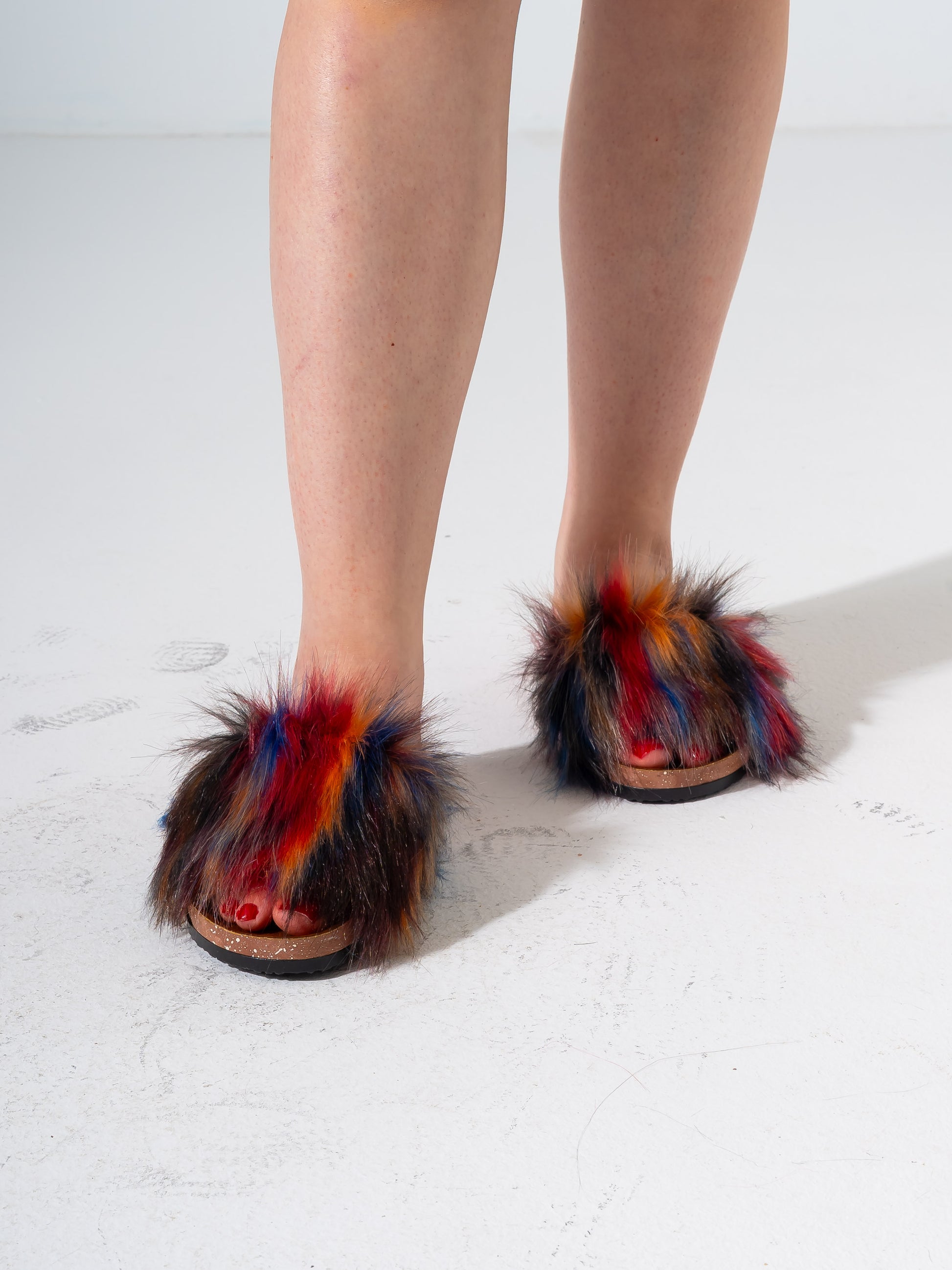 Experience a blend of luxury and relaxation with these plush slide sandals. Featuring a wide single band covered in premium faux fur, these slides offer a soft, cozy embrace for your feet while maintaining a sleek, modern silhouette.