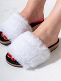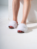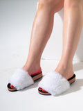 Step into comfort and style with these trendy faux fur slides. Featuring a luxuriously soft fluffy strap and a durable cork-textured platform, these sandals are perfect for both indoor lounging and casual outdoor strolls.