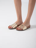 Add a touch of elegance to your outfit with the Shine On Mule in gold. Designed with a unique sheen, it radiates sophistication and style. Perfect for any occasion, this mule is 100% statement and 0% discomfort, giving you the best of both worlds.