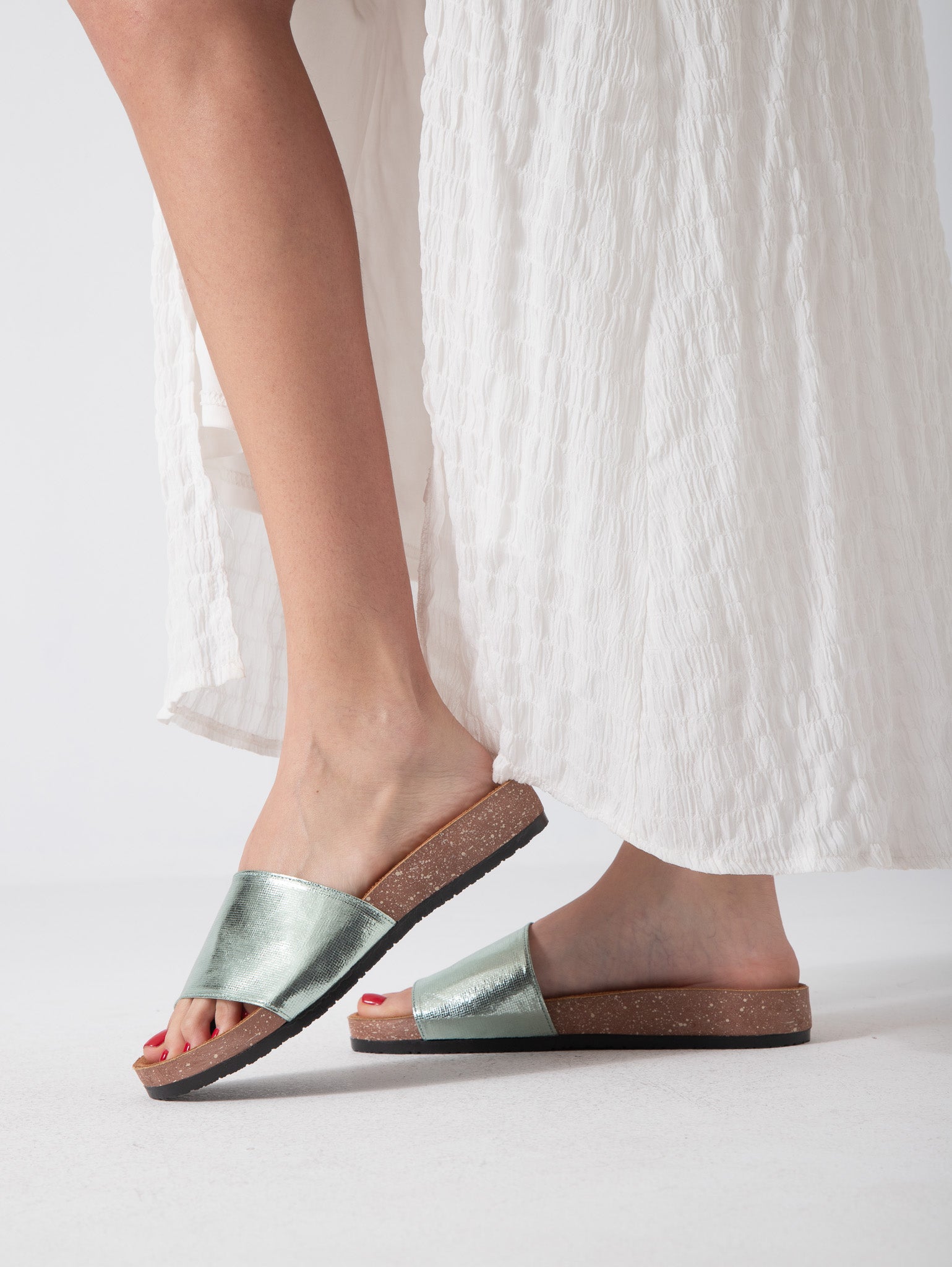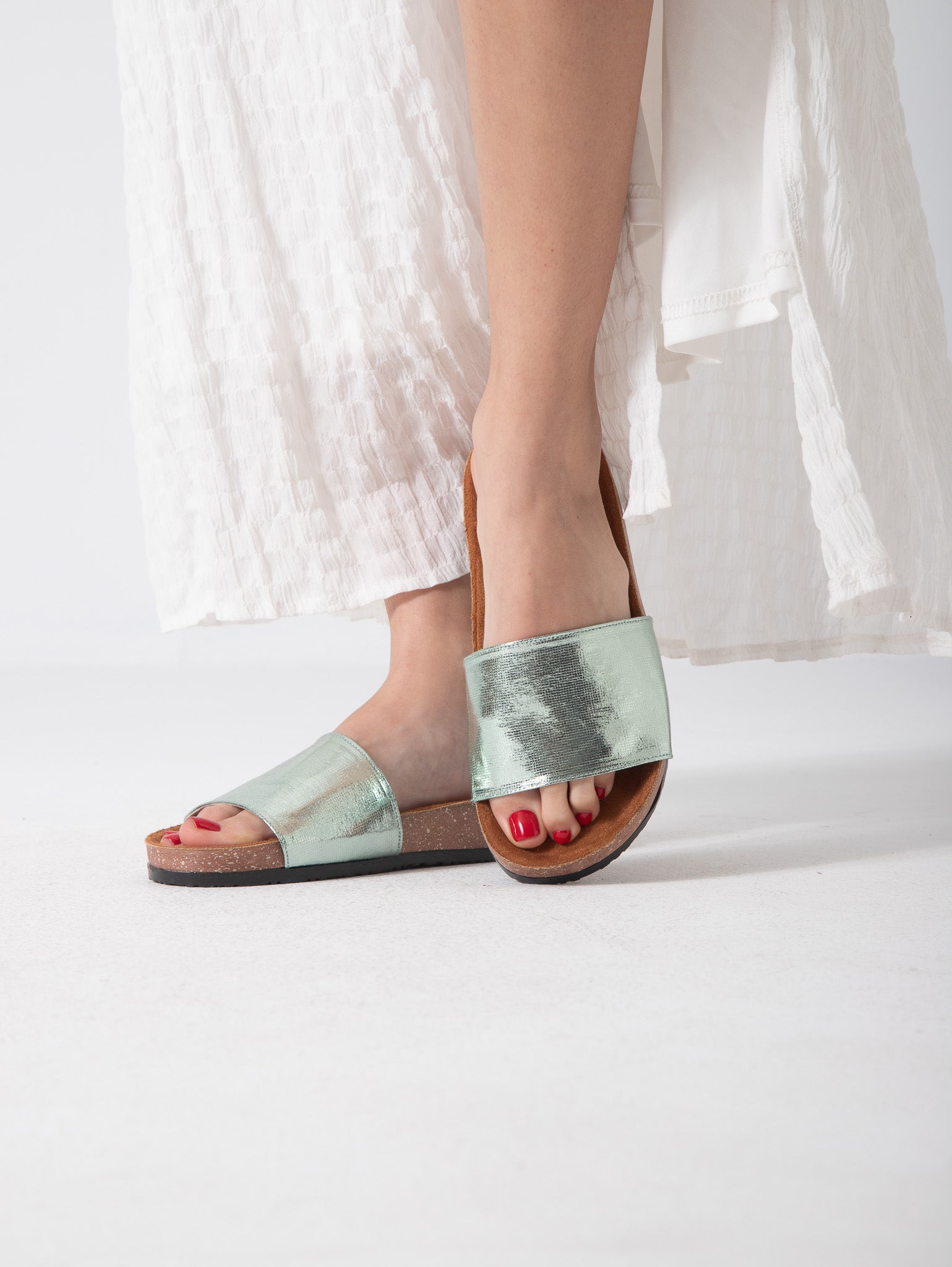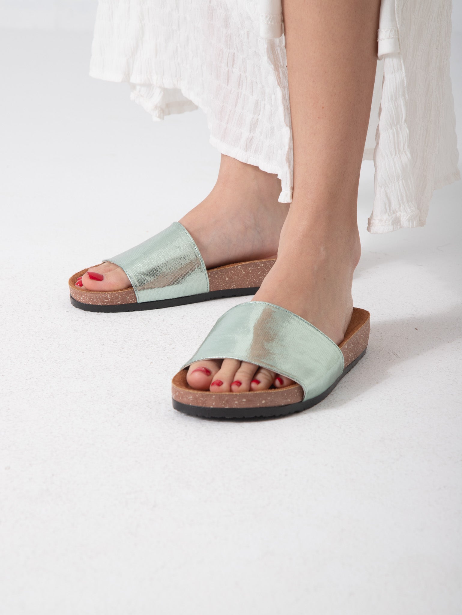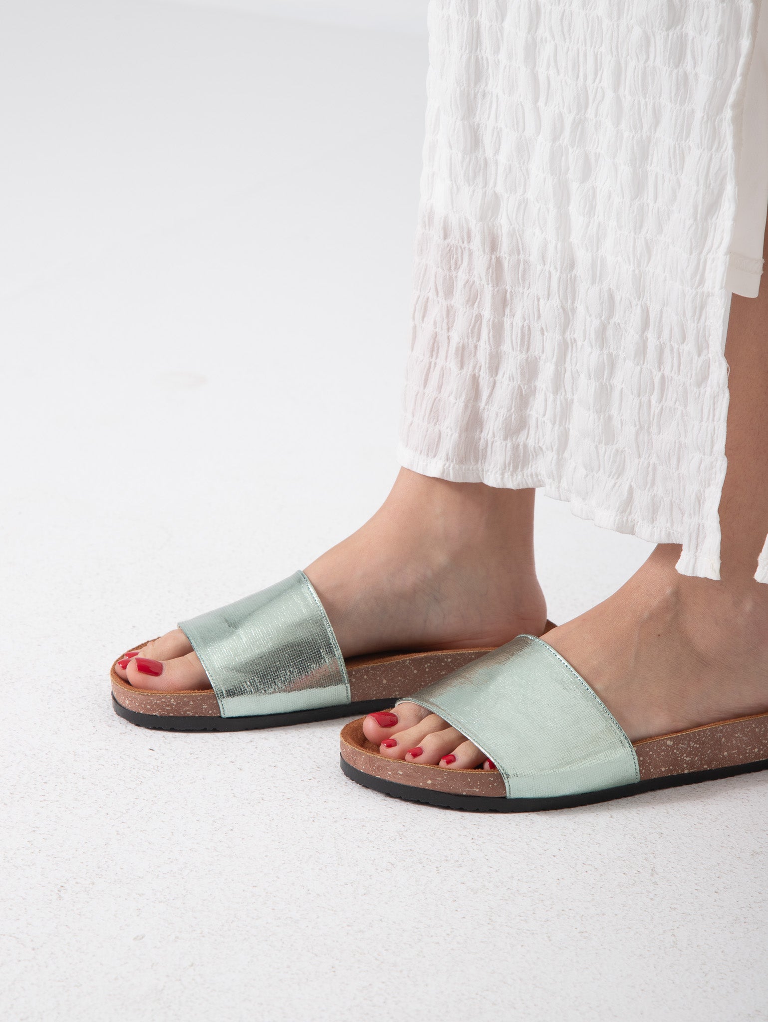 As an expert in the shoe industry, our new Shine On Mule offers a refreshing update to your wardrobe. The mint green color will add a pop of color to any outfit, while the comfortable slip-on design makes for easy wear. Add a touch of style and comfort to your look with the Shine On Mule.