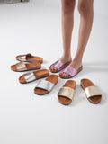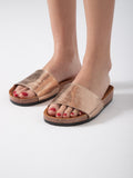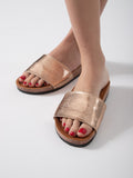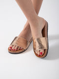 Introducing the Shine On Mule in rose gold. This stylish mule features a sleek design and a classy rose gold color that is sure to make a statement. Its comfort-focused design and durable construction make it the perfect addition to any outfit. Elevate your style with the Shine On Mule.