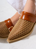 Elevate your everyday wardrobe with these sophisticated pointed-toe mules. These shoes feature a distinctive honeycomb-style woven texture that adds a rich, tactile dimension to their classic silhouette.