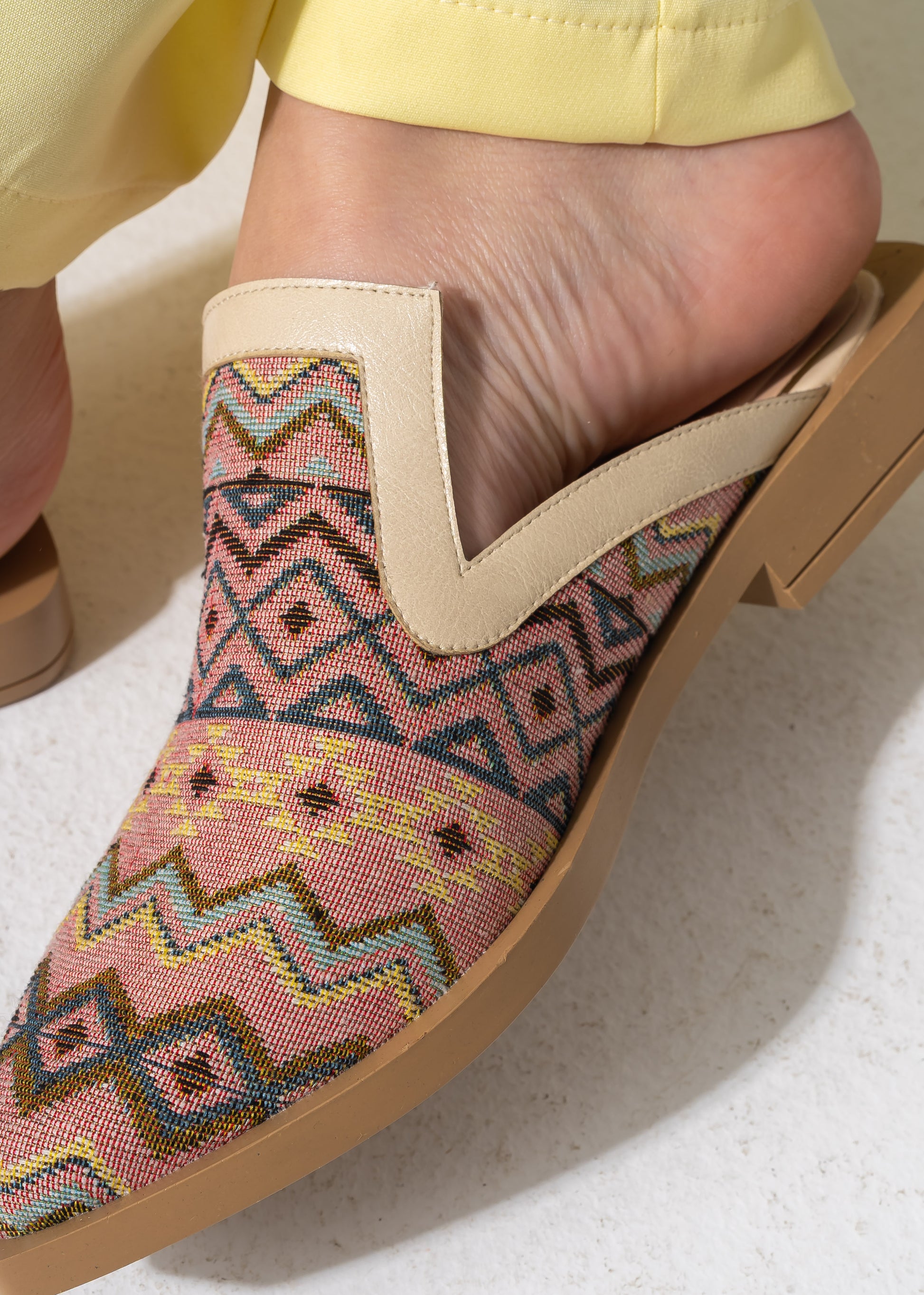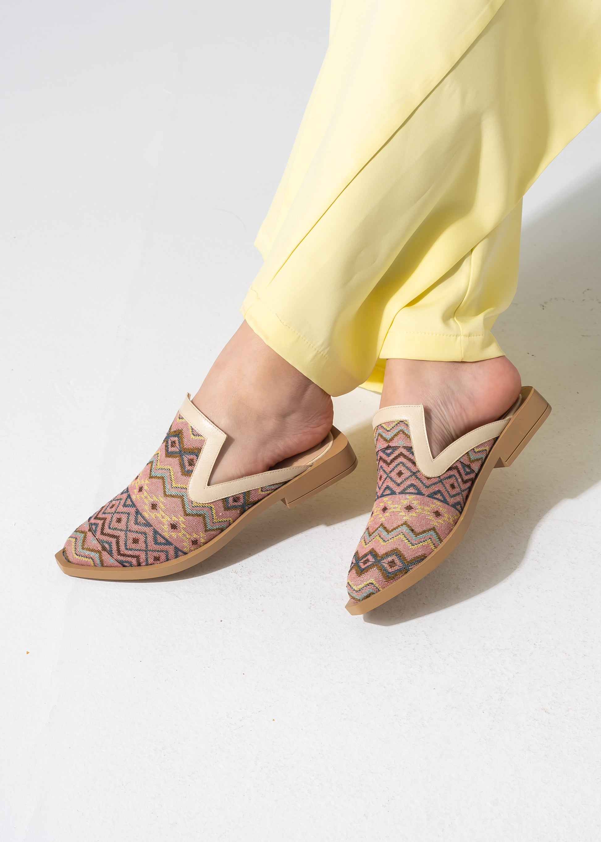Mixed-Finish Pointed Mules - BEIGE