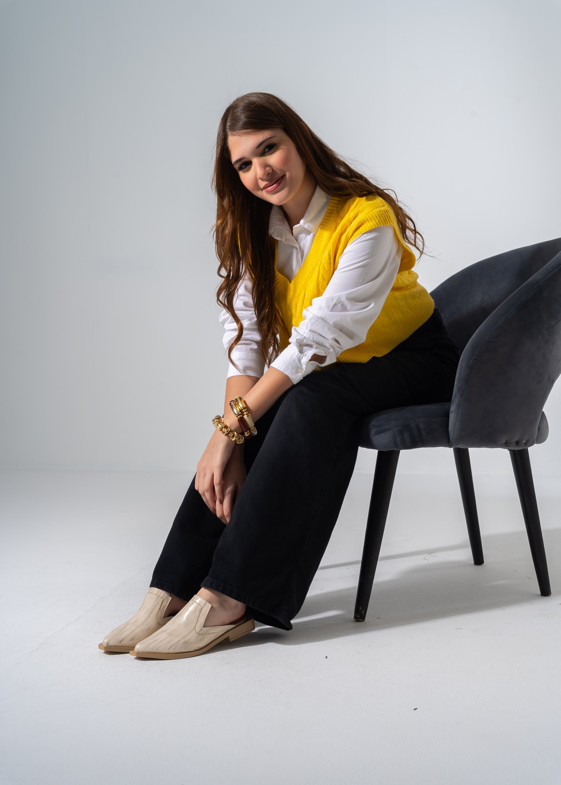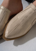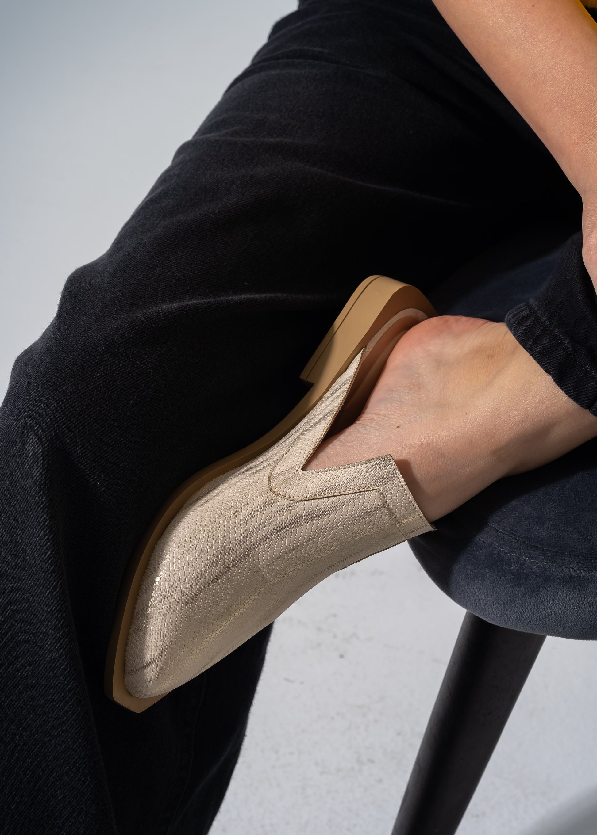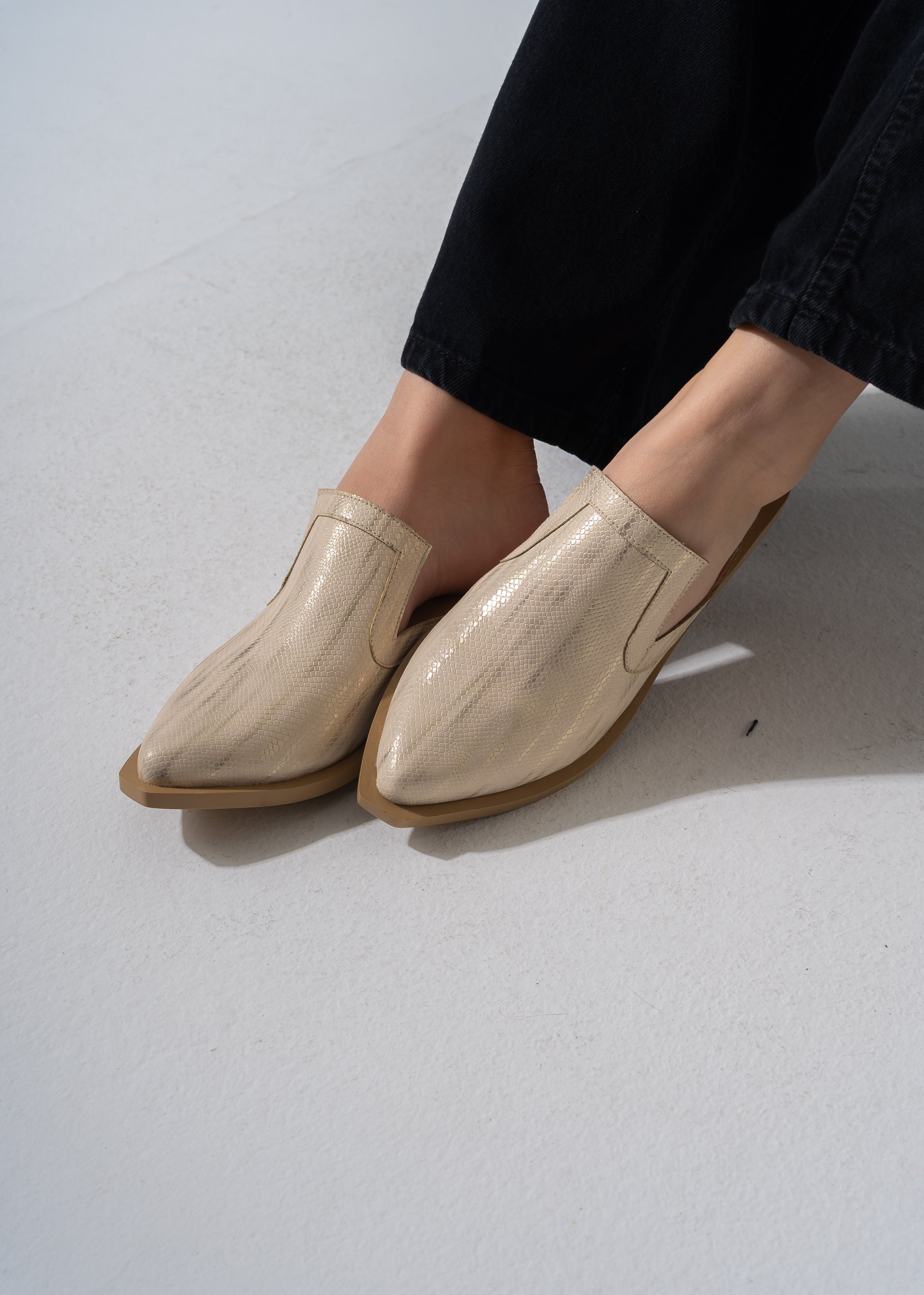 Sole: Features a durable, slim flat sole with a slightly extended edge for added contemporary flair.
