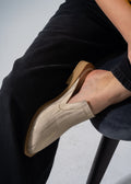 Style: Sleek slip-on mules featuring a sharp pointed-toe and a modern V-cut side profile.