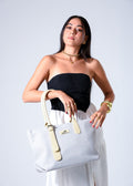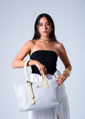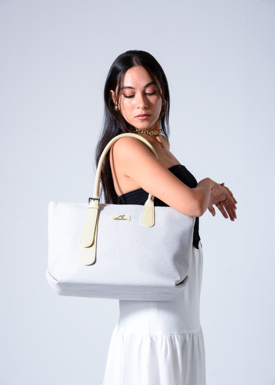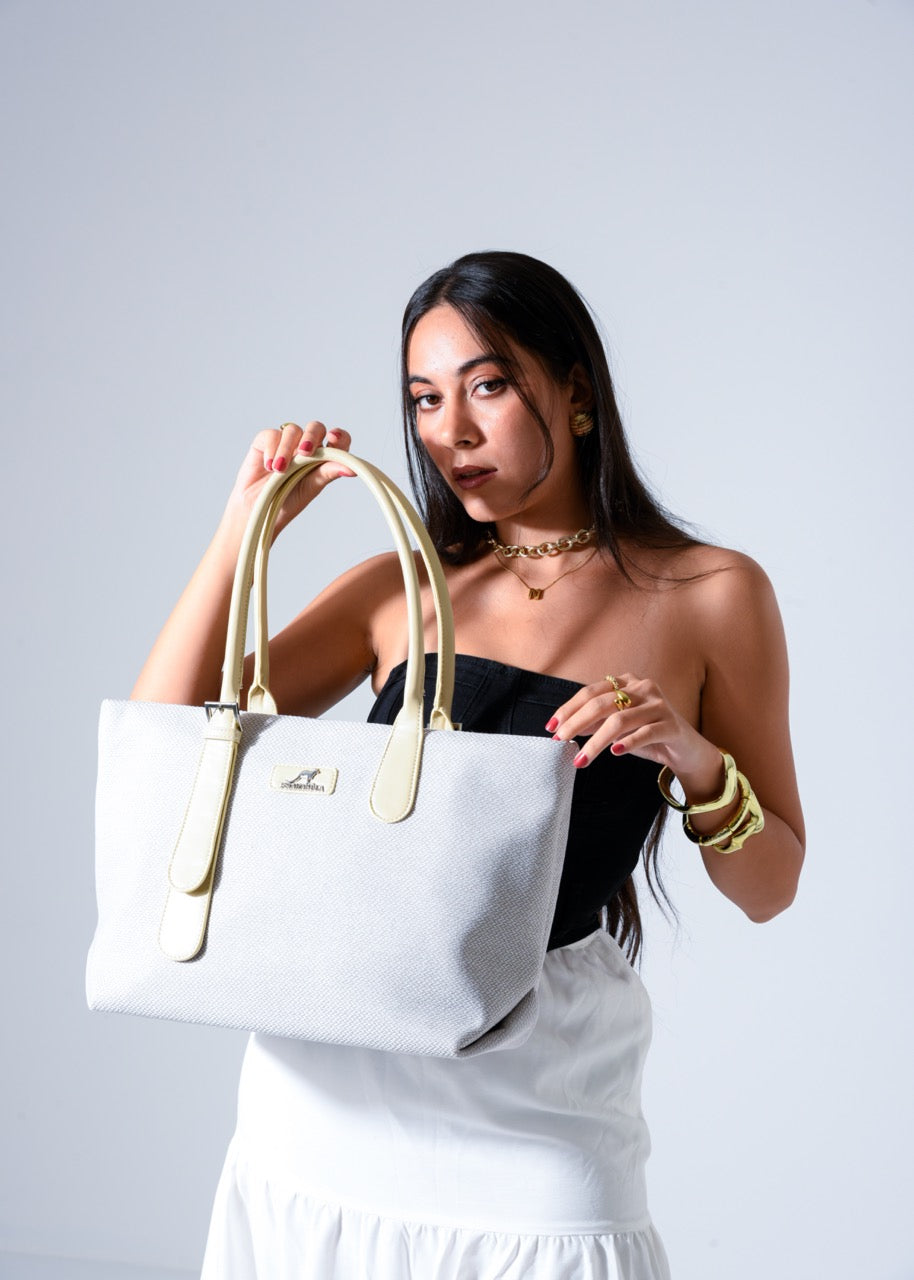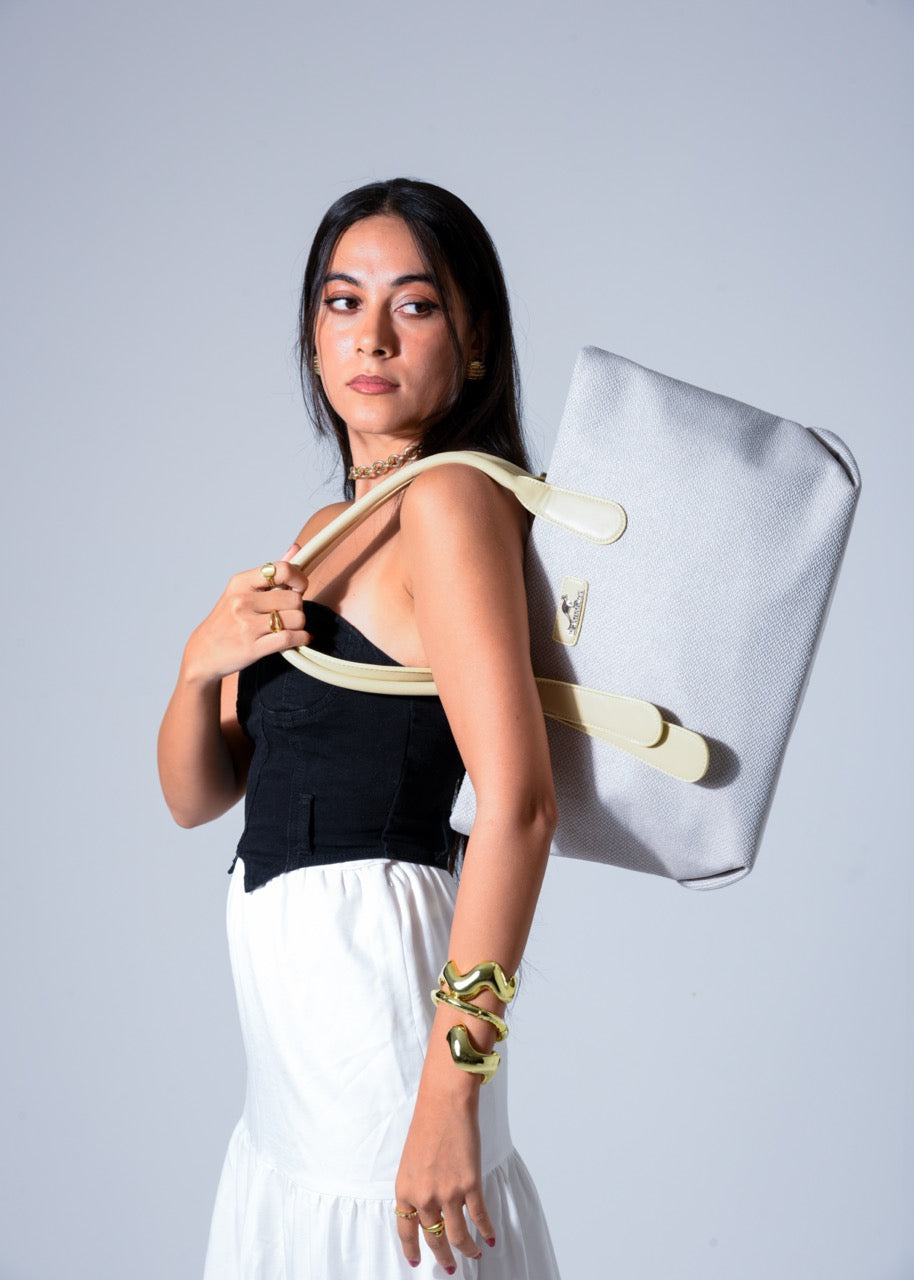 This beige tote bag features a contrasting handle that adds a subtle yet stylish detail. Crafted for durability and everyday use, it offers ample space for essentials while maintaining a sleek, professional appearance. Ideal for those seeking a practical accessory with a refined touch.