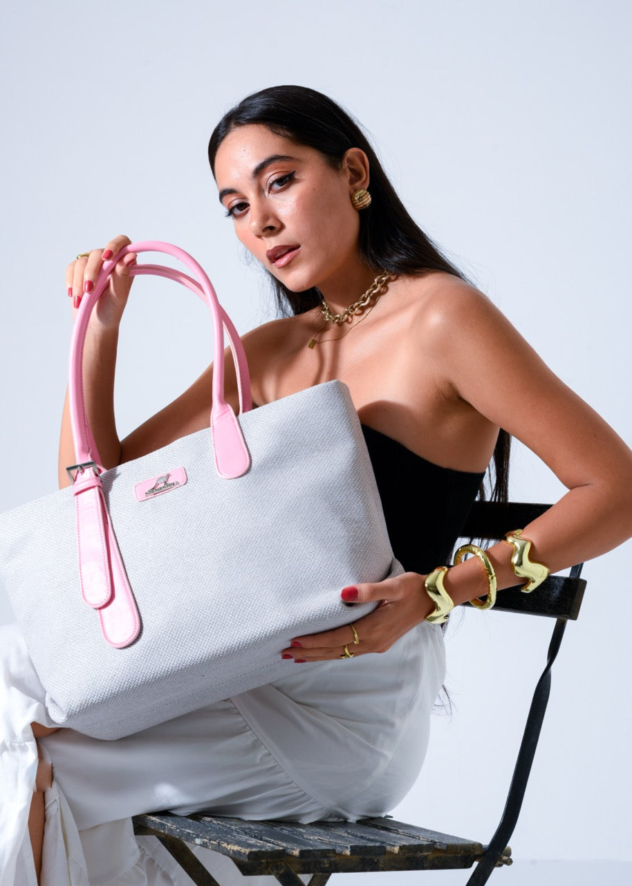 Tote Bag with Contrast Handle - PINK
