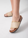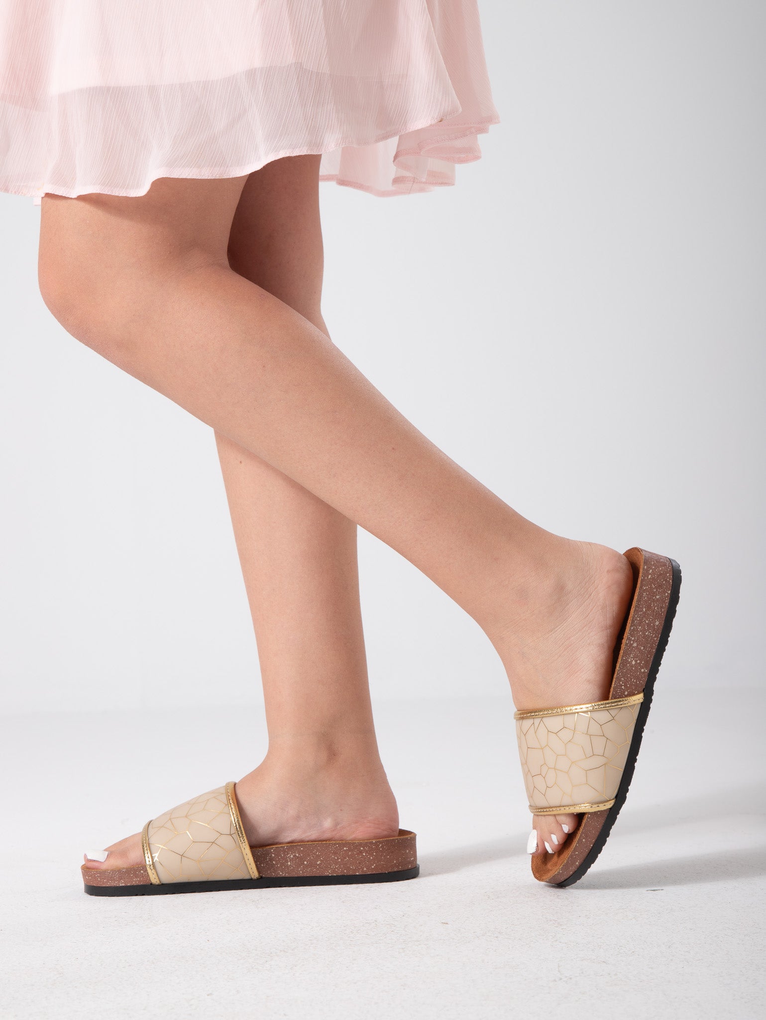 The Urban Mosaic Slide in gold represents advanced footwear engineering with proprietary polymer composition offering optimal density-to-weight ratio. The metallic gold finish utilizes UV-resistant pigmentation to maintain color integrity through extended exposure. Featuring an ergonomically-designed footbed with strategic compression mapping, these slides deliver precise support to key pressure points while the non-porous surface resists moisture absorption. The specialized tread pattern maximizes surface contact for enhanced stability across varied terrain.
