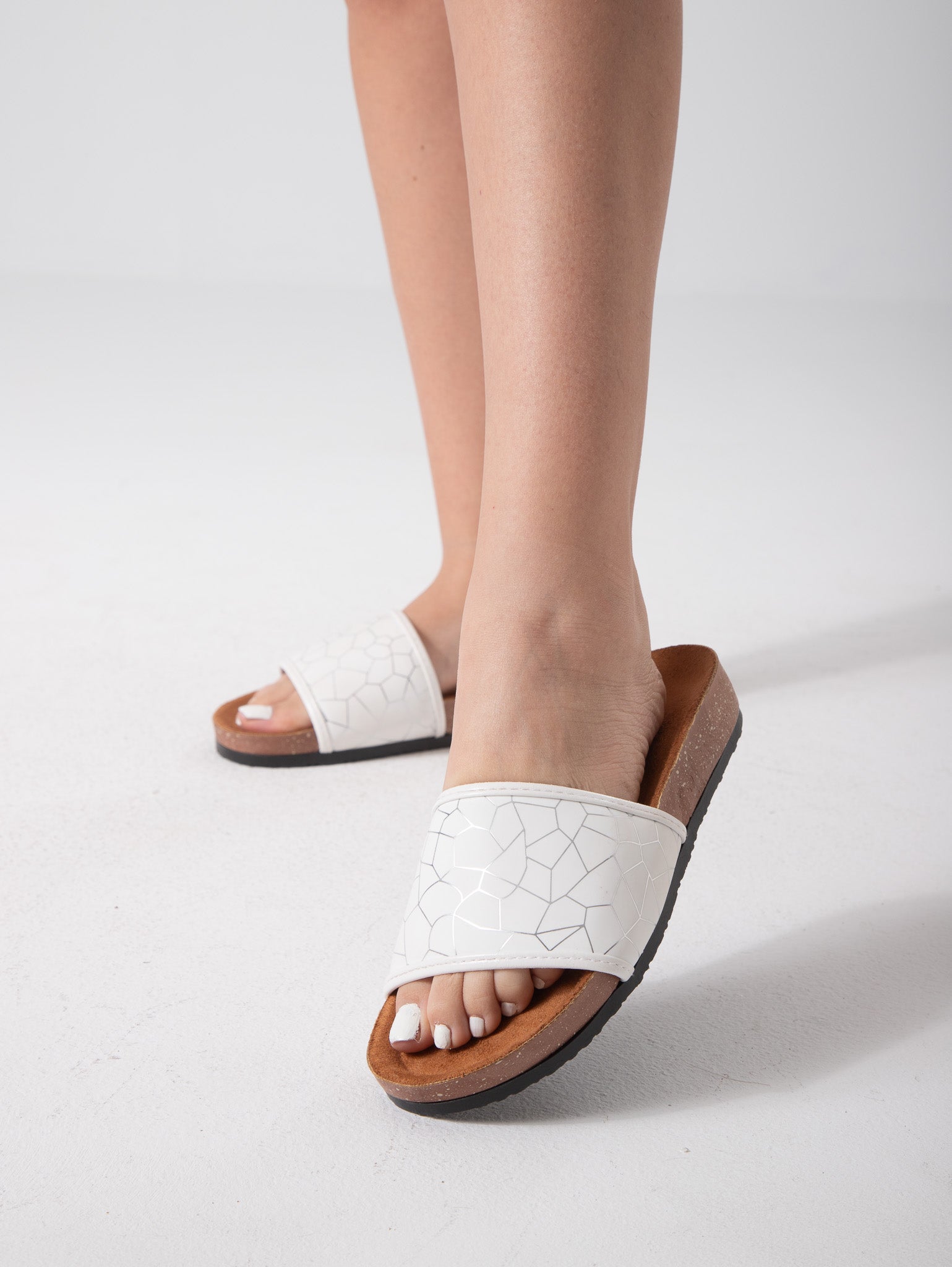 The Urban Mosaic Slide in white delivers sophisticated urban style with exceptional comfort. Featuring a precision-engineered footbed that supports natural arch alignment, these slides combine minimalist aesthetics with anatomical design. The durable outsole provides reliable traction while the clean white finish ensures versatile pairing with casual and athleisure outfits.